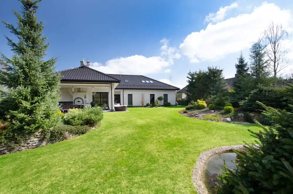 Siatka na krety, system nawadniania, zadbane, różnorodne nasadzenia sprawiają, że ogród jest wprost bezobsługowy i zielony przez caaaaały rok.