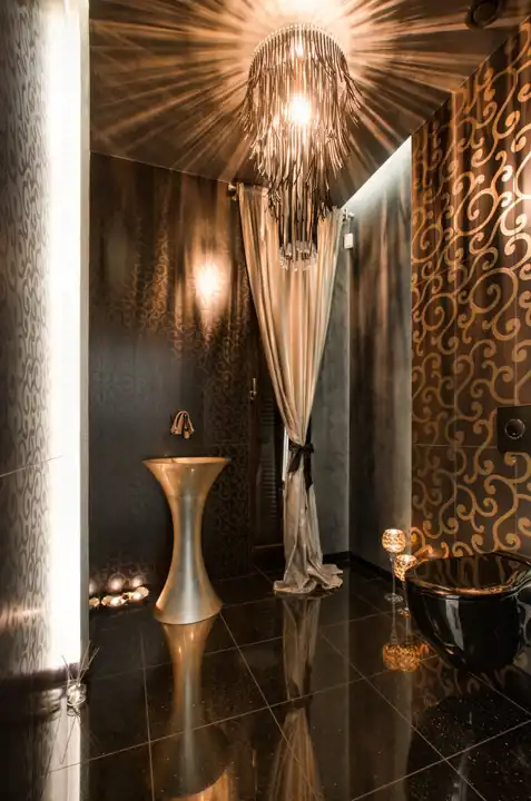 Chcesz by dobrze Ci się spało i miło wstawało? Proszę bardzo, prywatności strzeże oddzielne skrzydło willi, w której mieści się stylowa sypialnia główna z oryginalnym pokojem kąpielowym i garderobą.
