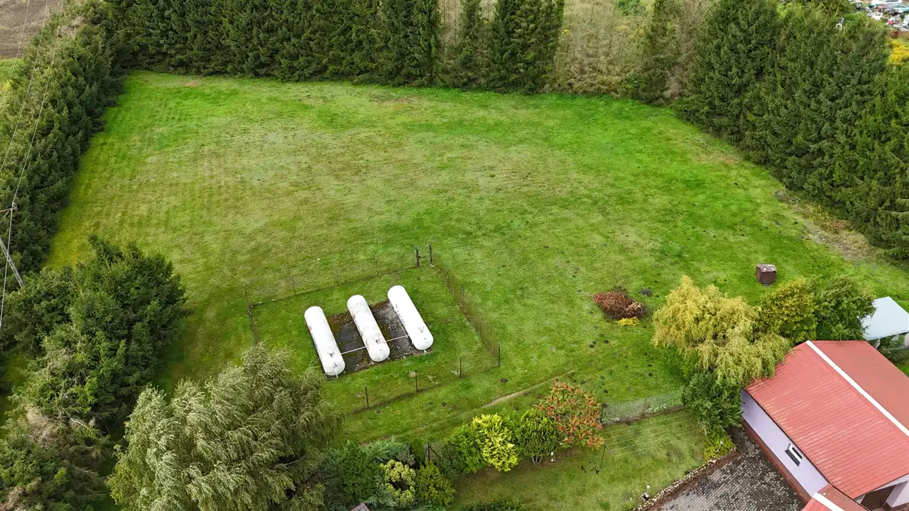 Media podłączone do nieruchomości: własne butle gazowe służące do ogrzania nieruchomości i wody, woda i kanalizacja miejska, instalacja elektryczna.
