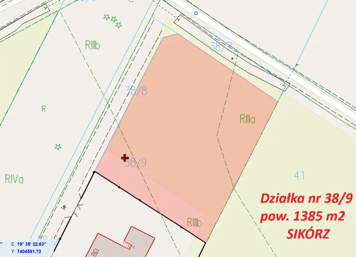 Działka numer 38/9 w Sikorzu, o pow. 1385 m2