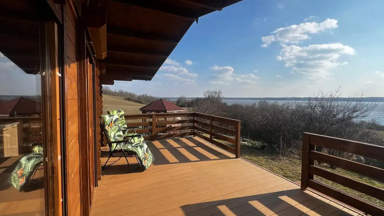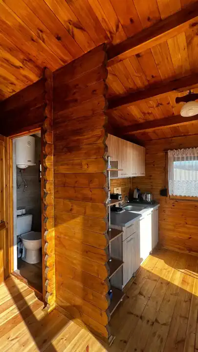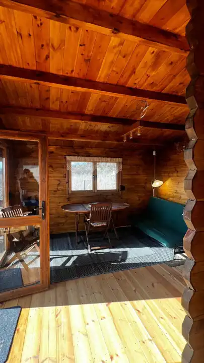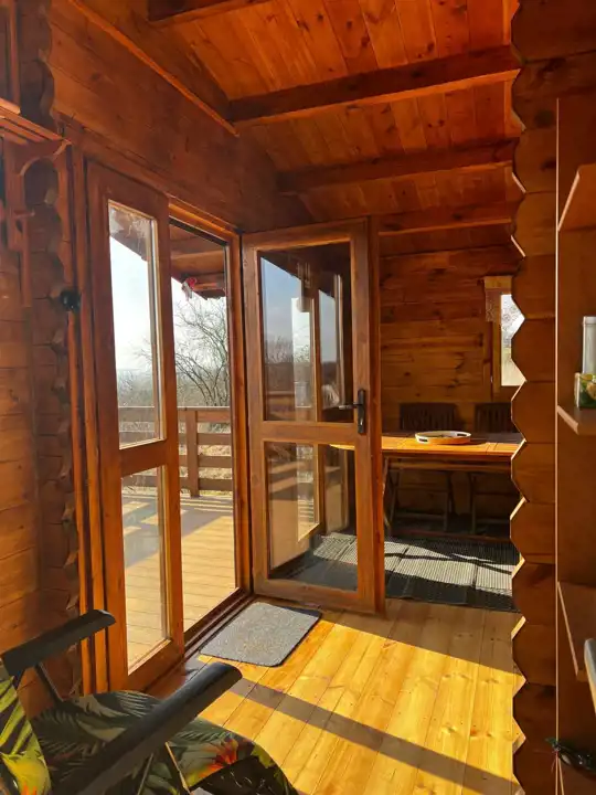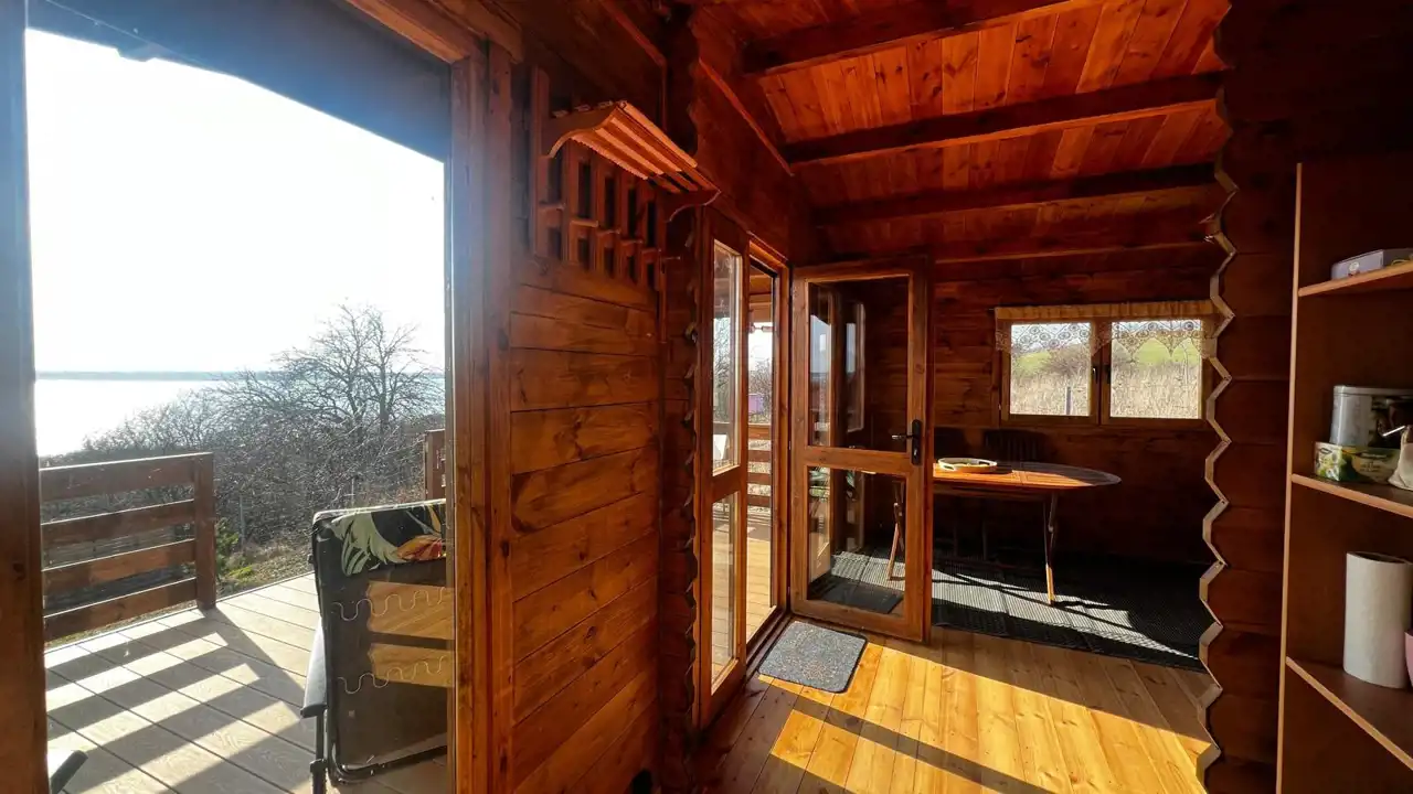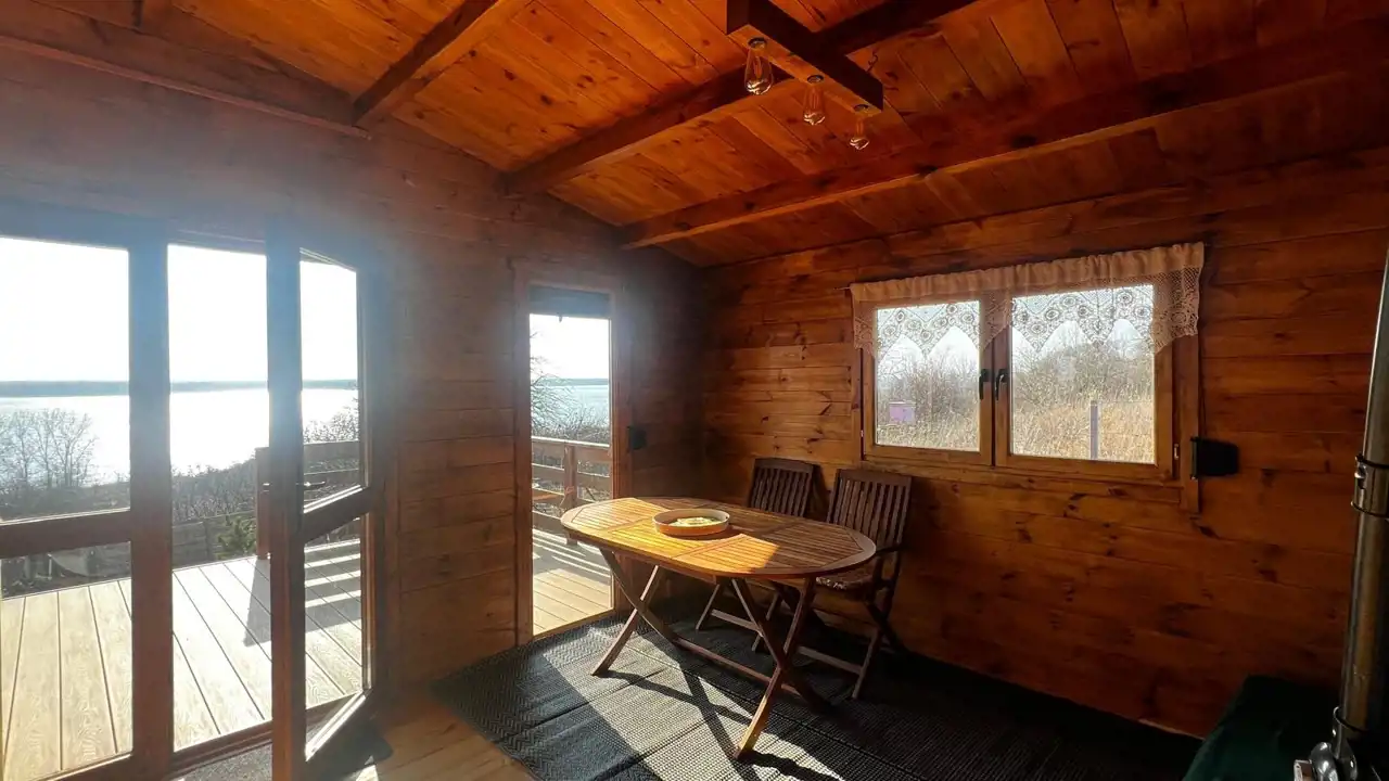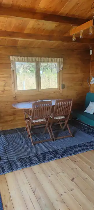 Na terenie działki znajduje się drewniany domek o powierzchni ok. 30 m² z przestronnym, 18-metrowym tarasem, który staje się naturalnym miejscem odpoczynku – idealnym na poranną kawę, letnie kolacje czy obserwowanie zachodzącego słońca. Domek jest w pełni urządzony i kompletnie wyposażony, gotowy do korzystania od pierwszego dnia.