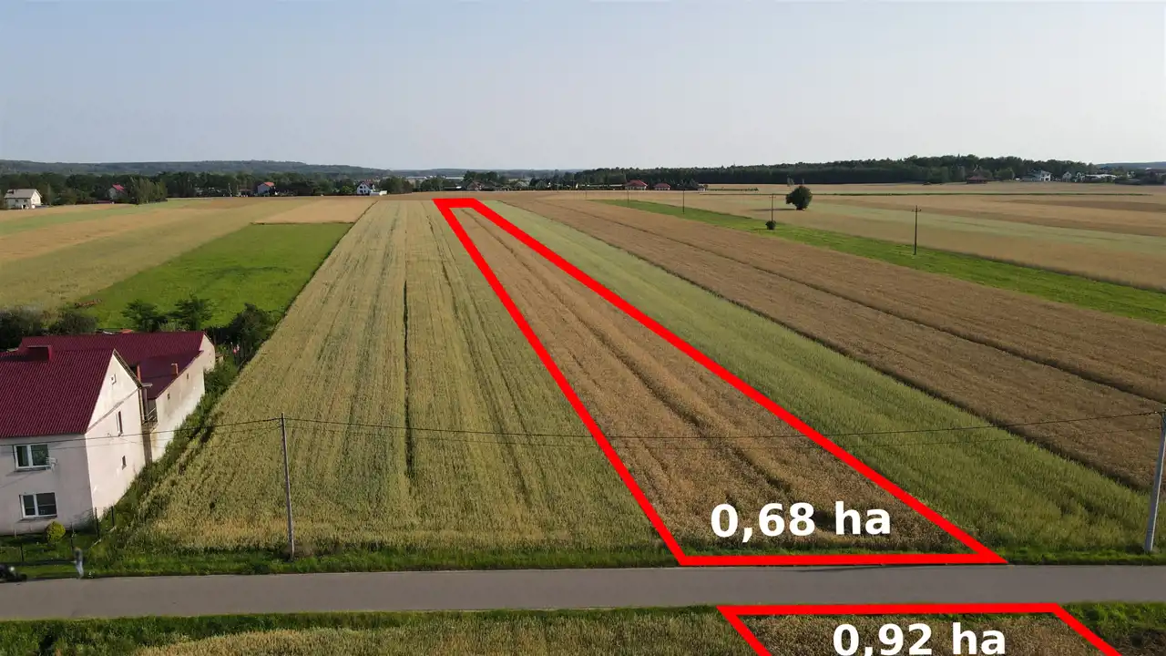 - Działka o numerze geodezyjnym 141, o regularnym kształcie, posiada bezpośredni dostęp do drogi gminnej. Szerokość działki 18 metrów. Powierzchnia działki 0,68 ha