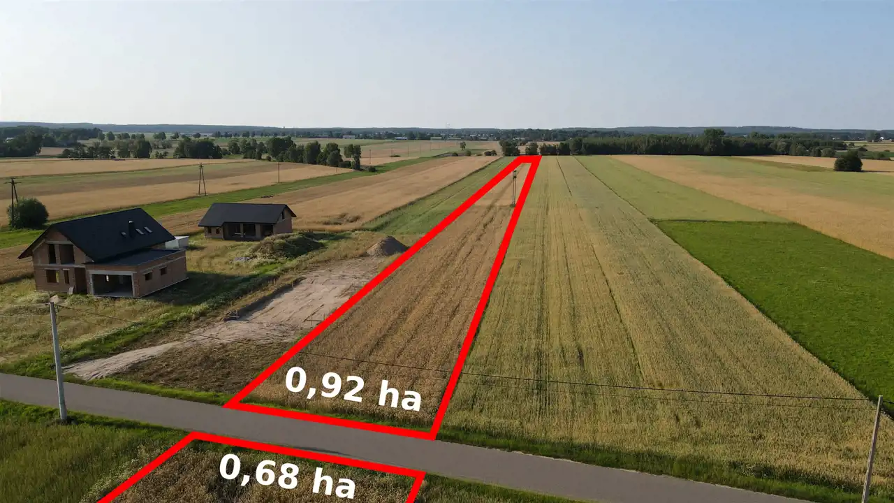 - Działka o numerze geodezyjnym 65, o regularnym kształcie, posiada bezpośredni dostęp do drogi gminnej. Szerokość działki 18 metrów. Powierzchnia działki 0,92 ha.