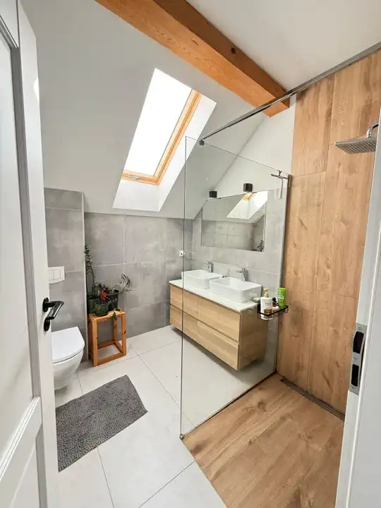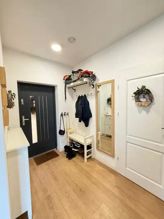 Nieruchomość urządzona jest w nowoczesnym stylu i wyposażona w system rekuperacji, który zapewnia komfortową wentylację.