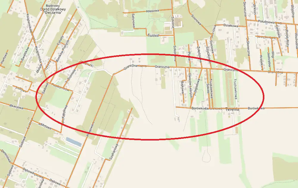 Do sprzedaży działka inwestycyjna o powierzchni 127 200 m2, zlokalizowana w miejscowości Żółwin, ok. 2 km od Podkowy Leśnej, w rejonie ul. Granicznej.