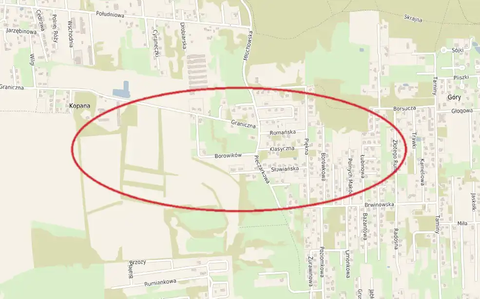 Oferujemy do sprzedaży działkę budowlaną o powierzchni 1626 m2, zlokalizowaną w miejscowości Terenia (gmina Brwinów), w rejonie ulicy Pieczarkowej.