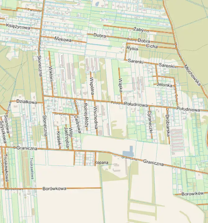 Na sprzedaż działka inwestycyjna o powierzchni 3904 m2, zlokalizowana w Żółwinie (gmina Brwinów) w rejonie ulicy Południowej.