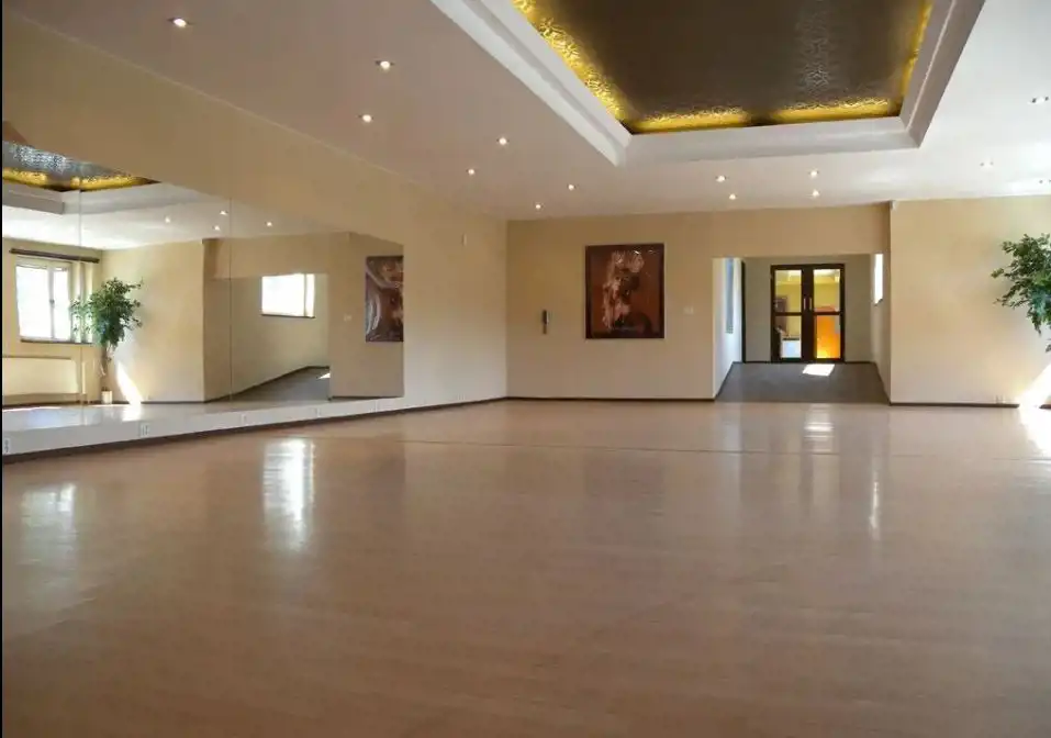 Lokal posiada dwa, oddzielne wejścia z gankami, a rozkład pomieszczeń i infrastruktury (dwie kotłownie, w sumie 3 łazienki, łącznik zamykany z obu stron) pozwala na łatwe rozdzielenie dwóch części budynku lub traktowanie ich wspólnie, w zależności od potrzeb. W kompleksie znajduje się jeden większy oraz 4 mniejsze garaże z drzwiami automatycznymi oraz automatyczna brama wjazdowa.