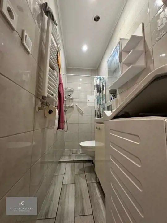 Łazienka: Wyremontowana, wykończona jasnymi płytkami. Zastosowano w niej funkcjonalny prysznic. Gotowa do użytku.