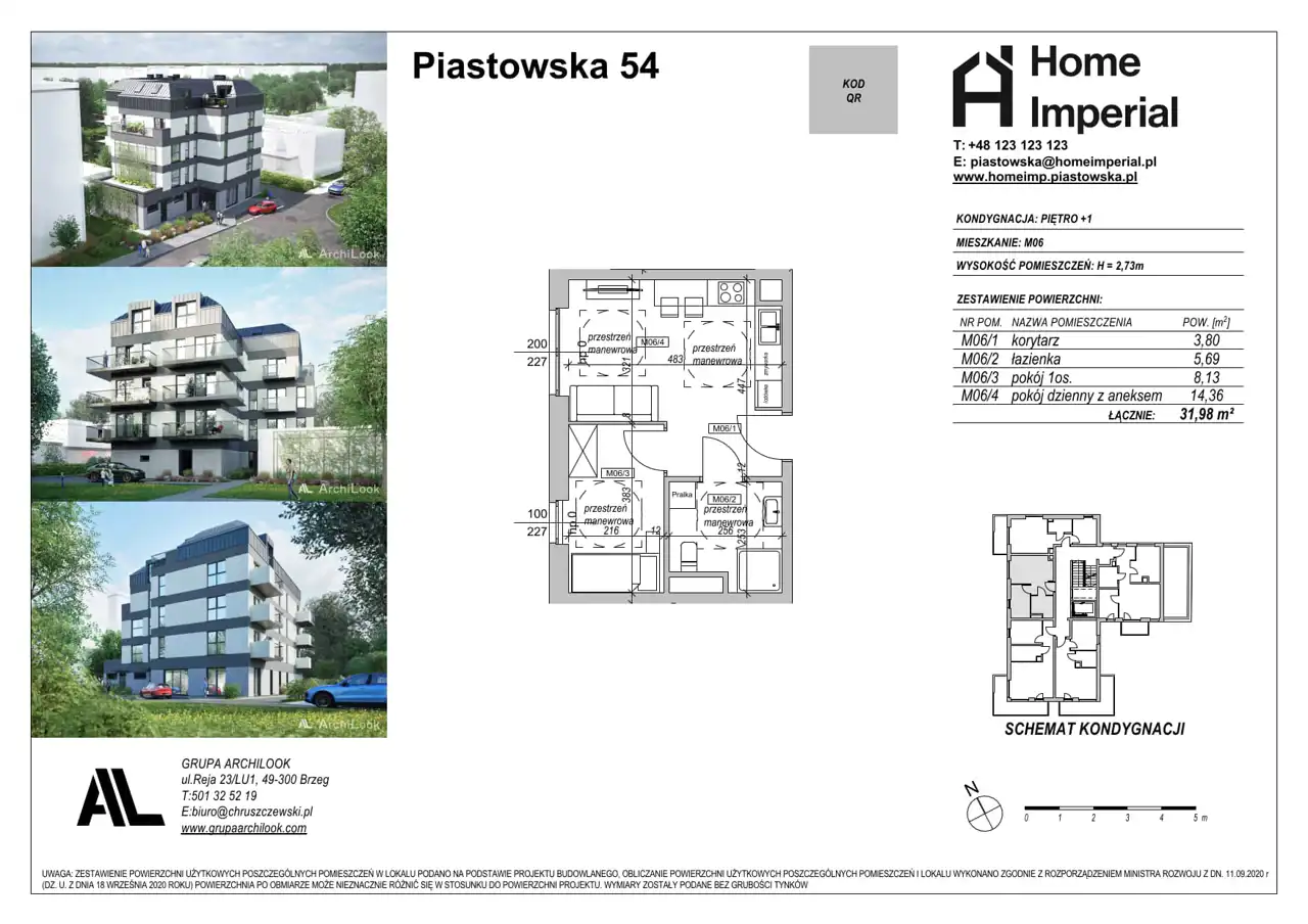 Na sprzedaż oferujemy funkcjonalne mieszkanie o powierzchni 31,98 m², położone na 1. piętrze nowoczesnej kamienicy przy ul. Piastowskiej 54 w Brzegu.