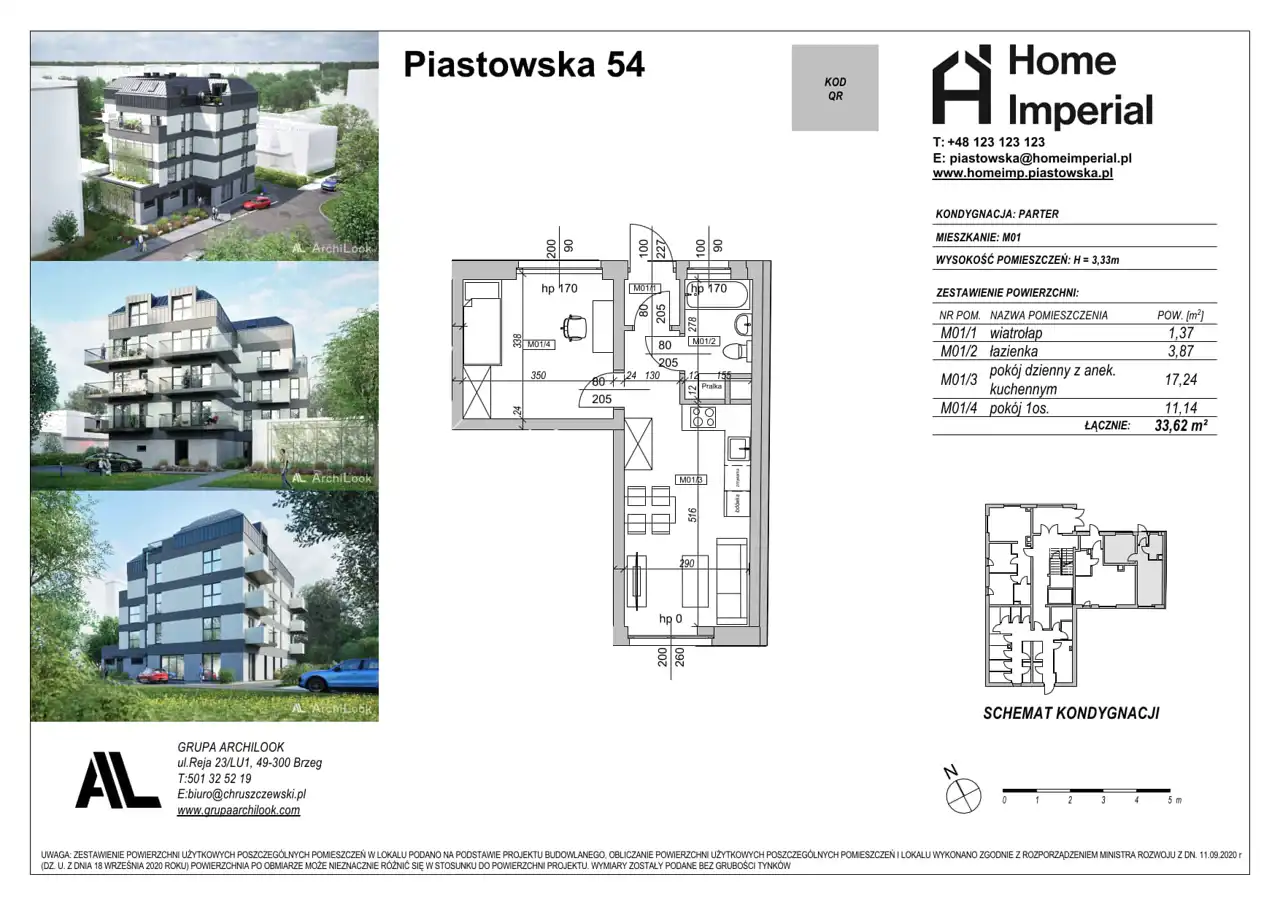 - Charakterystyka mieszkania 33.62 m2, 2 pokoje