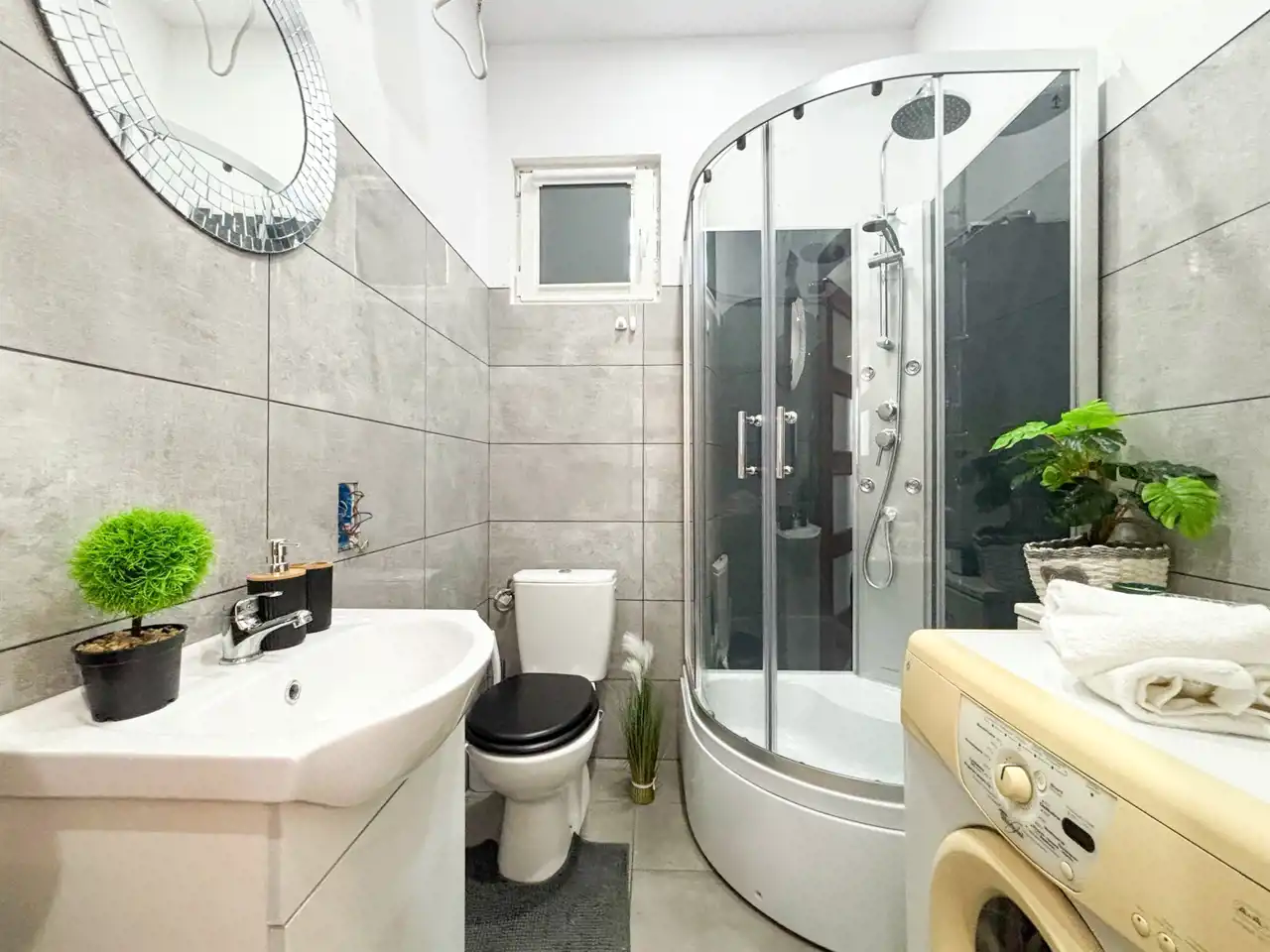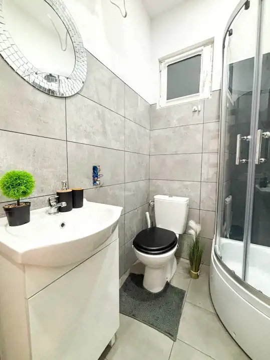 - Media Ogrzewanie: elektryczne; Woda: ciepła - terma; Kanalizacja: miejska; Prąd: jest; Gaz: brak