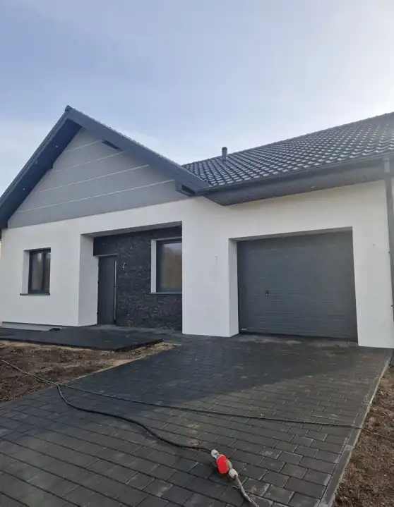 Nieruchomość parterowa składa się z salonu z aneksem kuchennym, 3 sypialni, dużej łazienki, toalety, garażu, kotłowni.