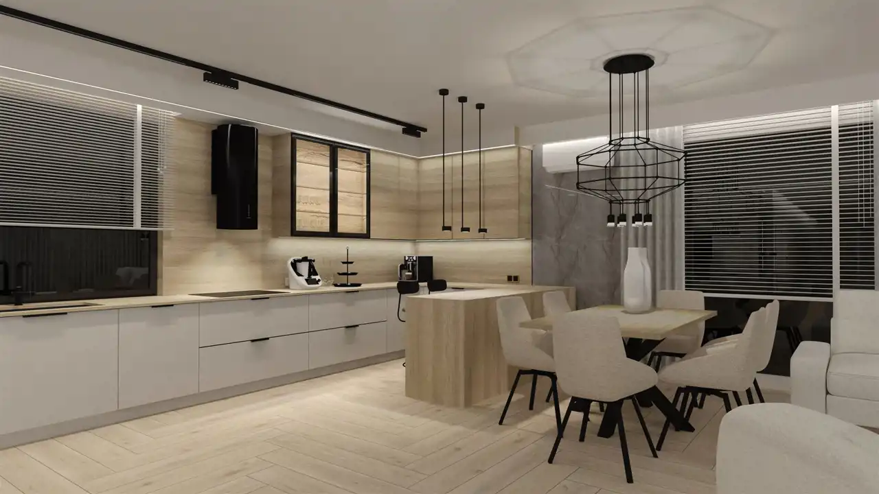 - wodną (wyprowadzenia w kuchni, łazienkach oraz kotłowni; kanalizacja z sieci),