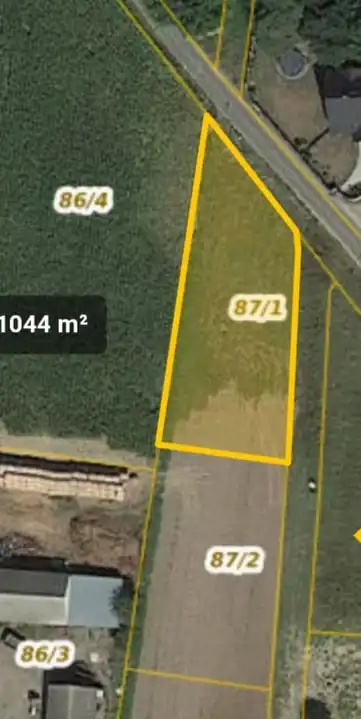 Działka w kształcie trapezu położona przy drodze asfaltowej.