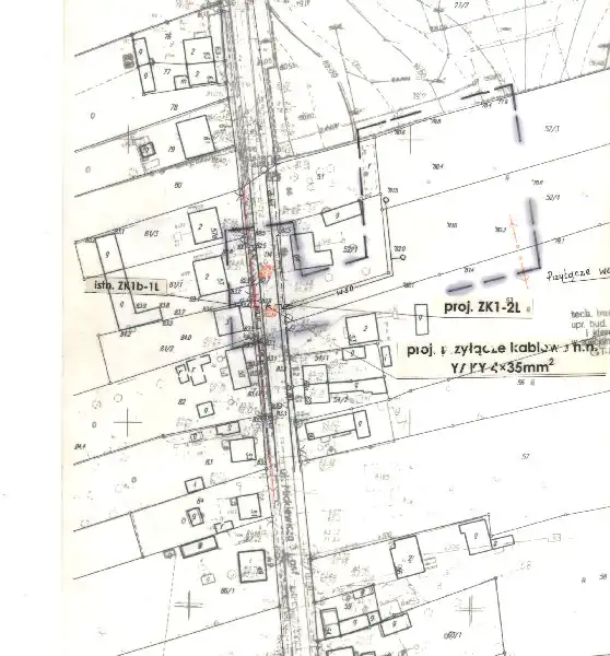 - Media Woda: jest; Kanalizacja: w ulicy; Prąd: na działce; Gaz: brak