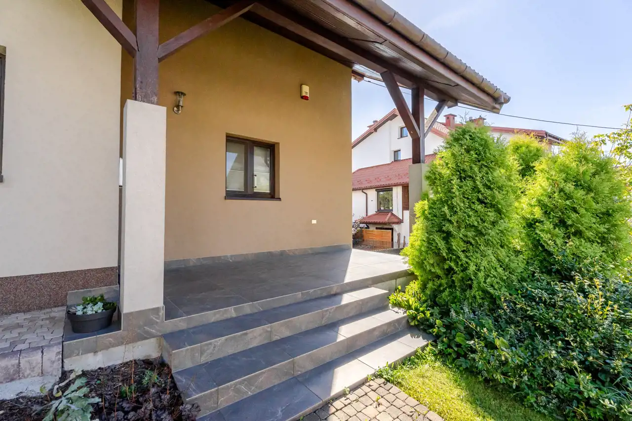 Lokalizacja: dom zlokalizowany jest w spokojnej i zielonej okolicy domów jednorodzinnych. Szkoła, przedszkole, żłobek w zasięgu spaceru. Szybki i wygodny dojazd do autostrady A4.