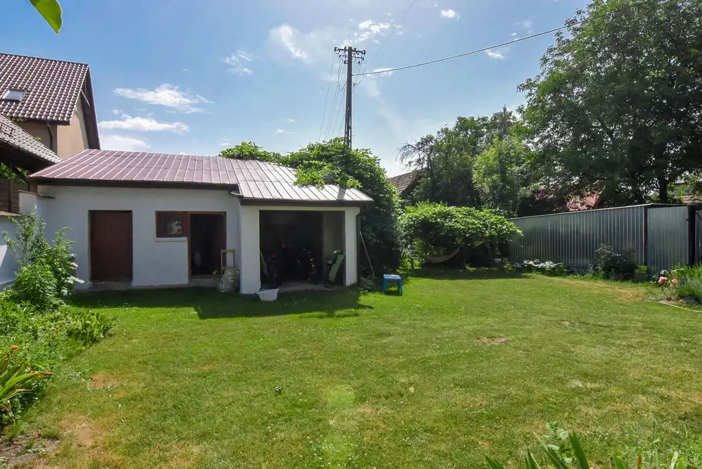 Na działce znajduje się również blaszany garaż a także budynek gospodarczy, służący do przechowywania różnych przedmiotów.