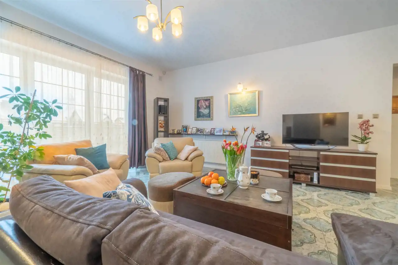 jasnego salonu (53,70m2) z wyjściem na taras i ogród.