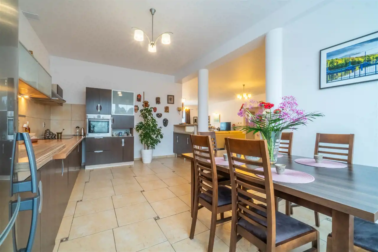 W pełni wyposażonej kuchni z dużym oknem ( wystawa na wschód ) połączonej z jadalnią (31m2)