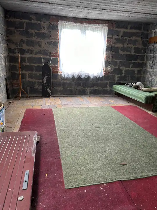 Na dom o powierzchni 65m2 składa się kuchnia w której znajduję się główne wejście oraz dwa przechodnie pokoje; brak łazienki. Kuchnia oraz pierwszy pokój wymagają remontu, natomiast drugi pokój wymaga wykończenia. Całość niepodpiwniczona; przyłączona energia elektryczna, woda ze studni; ogrzewanie z kuchni węglowej. Dach pokryty papą termozgrzewalną, okna PCV, materiał konstrukcyjny - pustak.