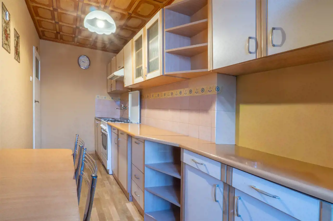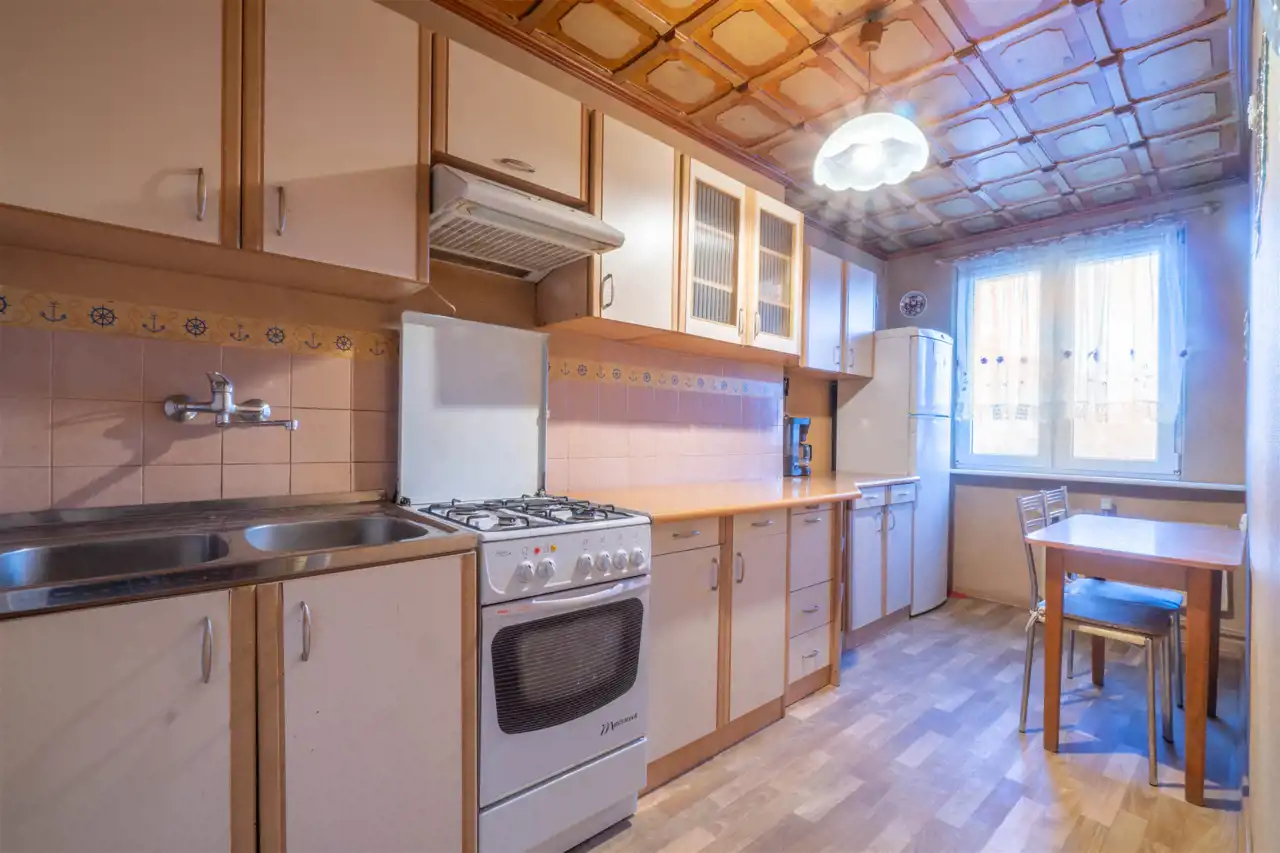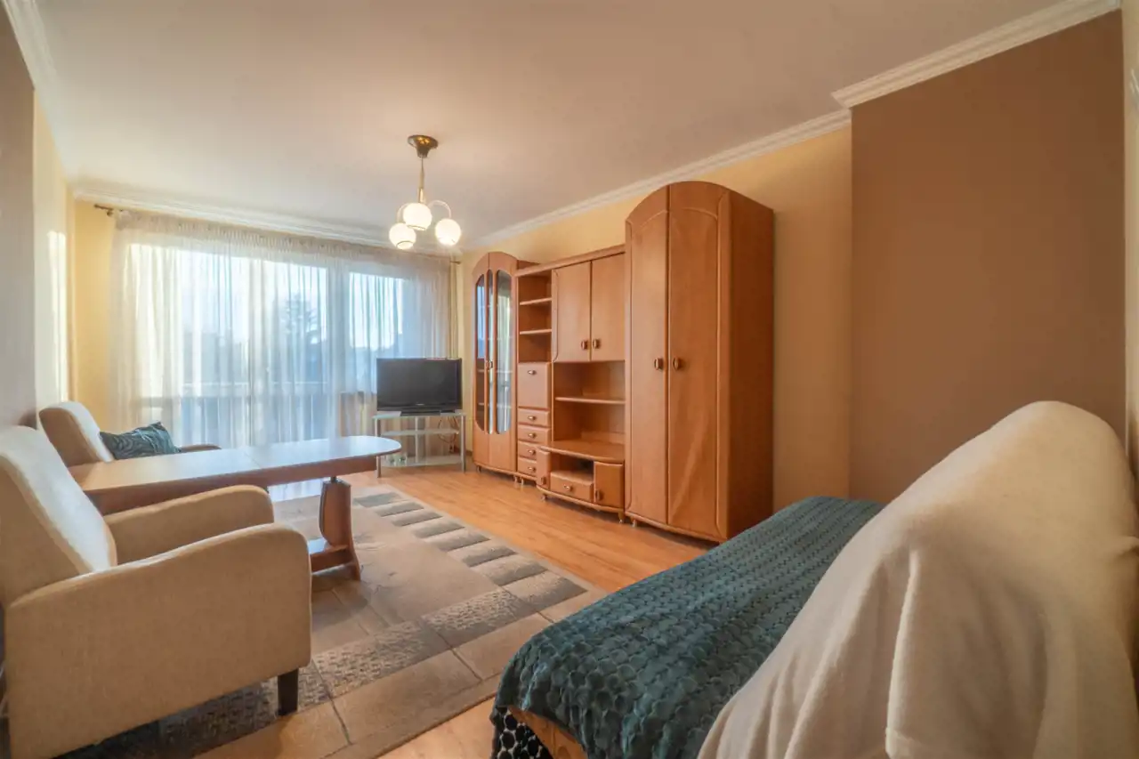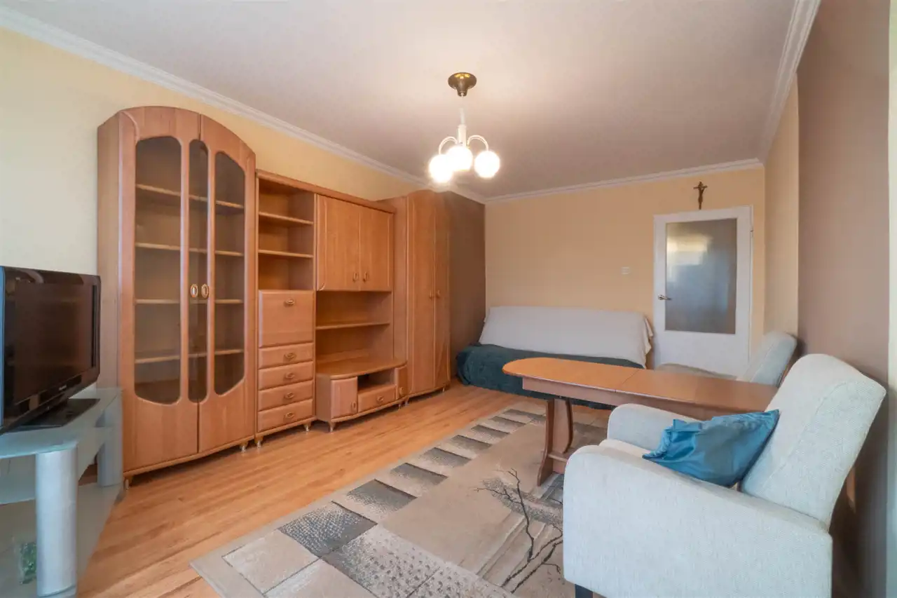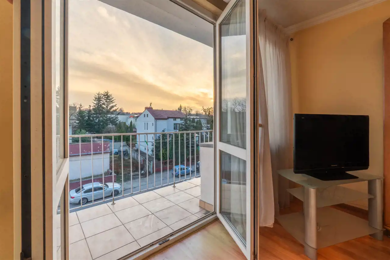 Nieruchomość składa się z dwóch pokoi - sypialni i pokoju dziennego z dużym oknem balkonowym, łazienki oraz osobnej kuchni.