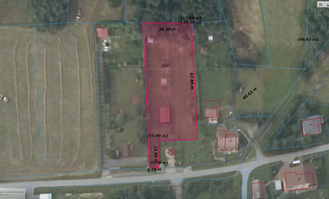 - Działka częściowo zagospodarowana, płaska, prostokąt