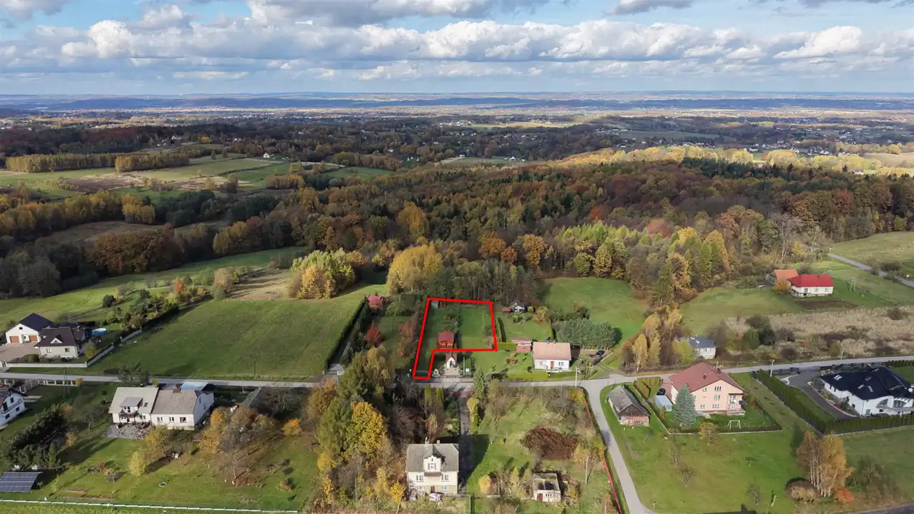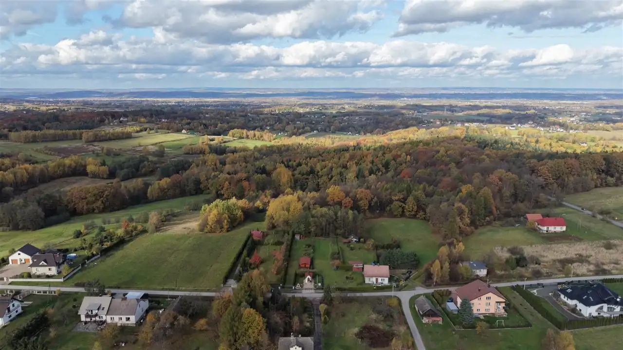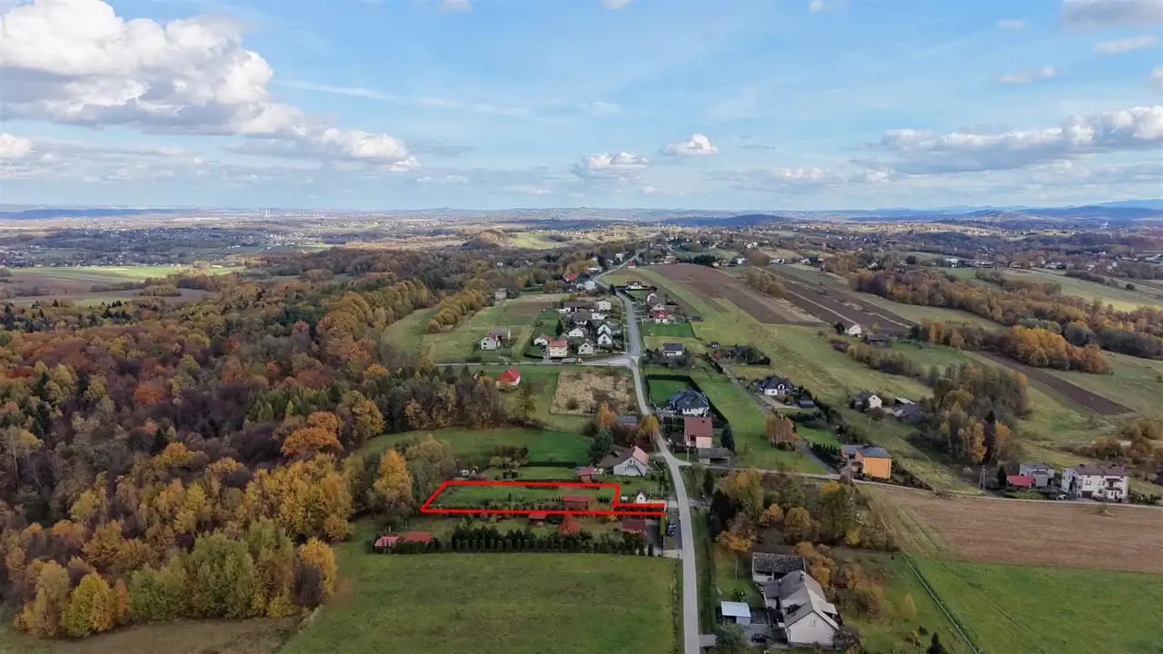 Lokalizacja działki w sąsiedztwie lasu, pozwala odpocząć od otaczającego nas na co dzień zgiełku, a jednocześnie pozostawać w szybkim kontakcie z „cywilizacją” jeśli zajdzie taka potrzeba – do Kalwarii Zebrzydowskiej dojazd zajmie nam 10 minut, do Wadowic – 20 minut, a do Krakowa jedyne pół godziny.