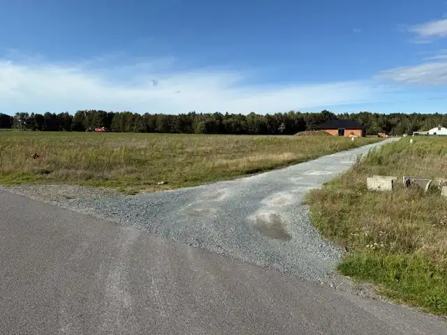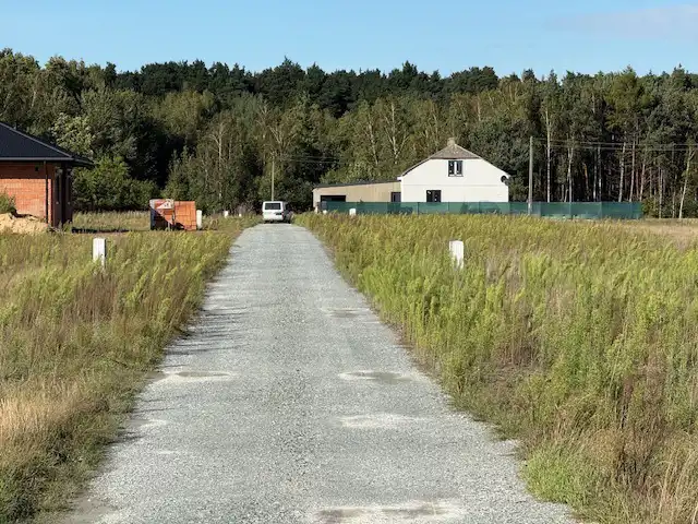 Dojazd do działek nowo wybudowaną drogą asfaltową wraz z chodnikiem.