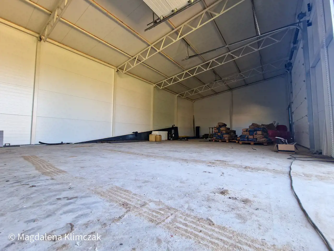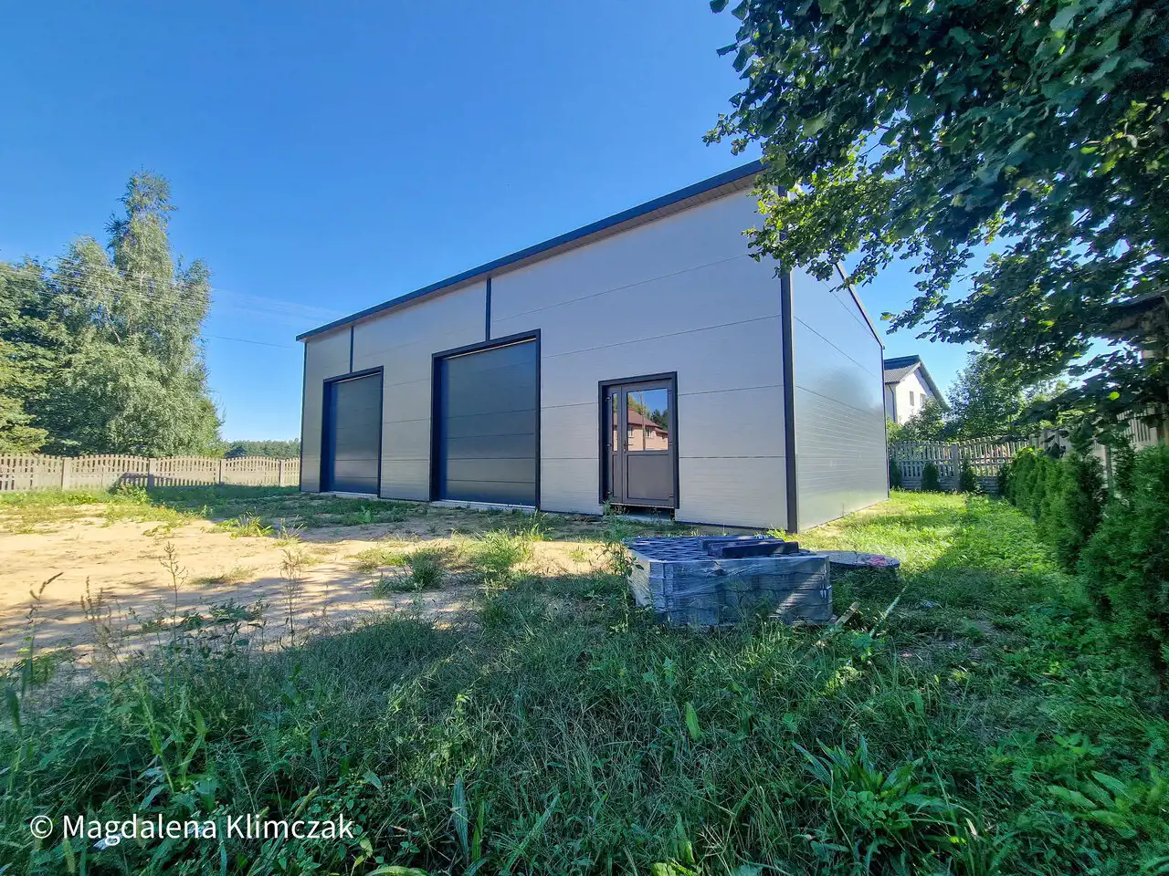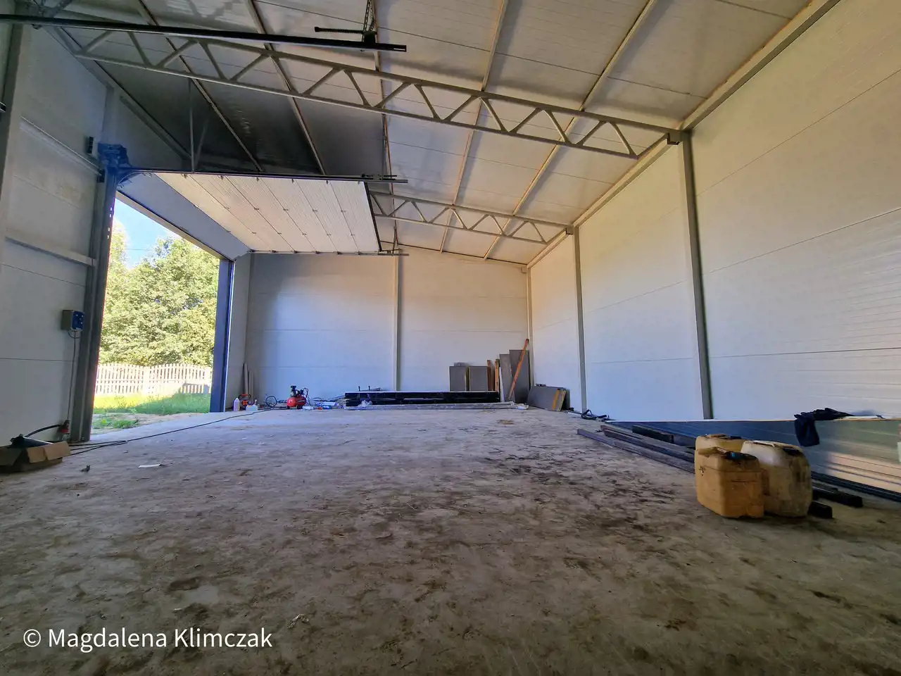 - Nowo postawiona hala o powierzchni 130 m² – solidna konstrukcja stalowa, wyposażona w podwójne, elektryczne wrota o wymiarach 3,5 x 3,5 m oraz tradycyjne wejście. Istnieje możliwość wydzielenia pomieszczenia socjalnego.