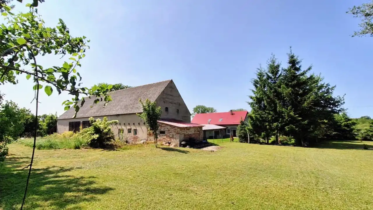 Na Sprzedaż nieruchomość , stare gospodarstwo na dwóch działkach. Działka nr 208 - 4431m2 - grunty rolne zabudowane oraz Działka nr 144 - 24.281m2 - pastwiska trwałe. Łącznie około 28.712 m2. W cenie nieruchomości stodoła około 350m2 , mniejsze pomieszczenia gospodarcze około 100m2 oraz Dom parterowy około 86m2. Dom posiada dwie łazienki, dwie kuchnie, 4 pokoje oraz dwa niezależne wejścia. Duże , otwarte poddasze na całej powierzchni domu.