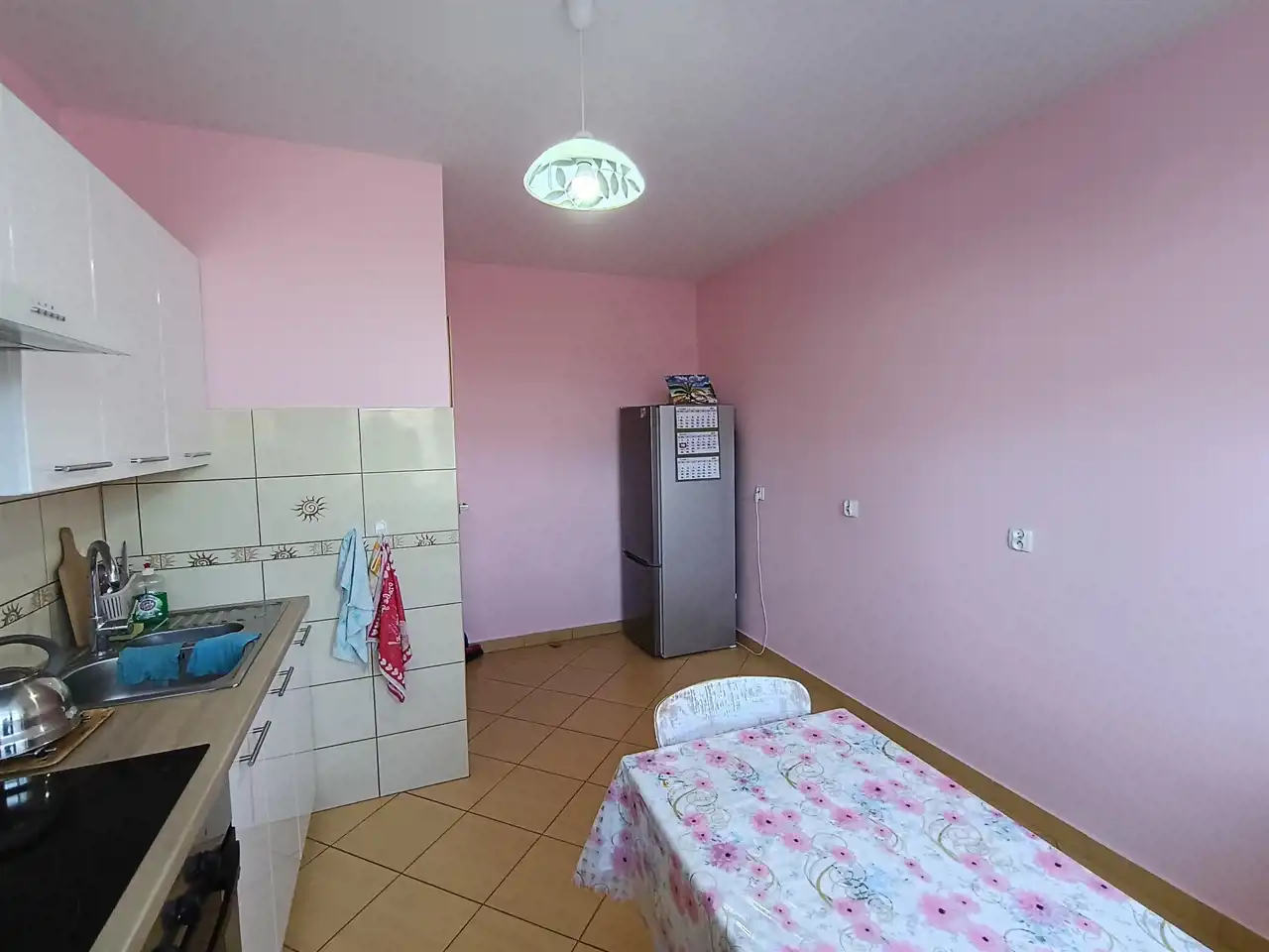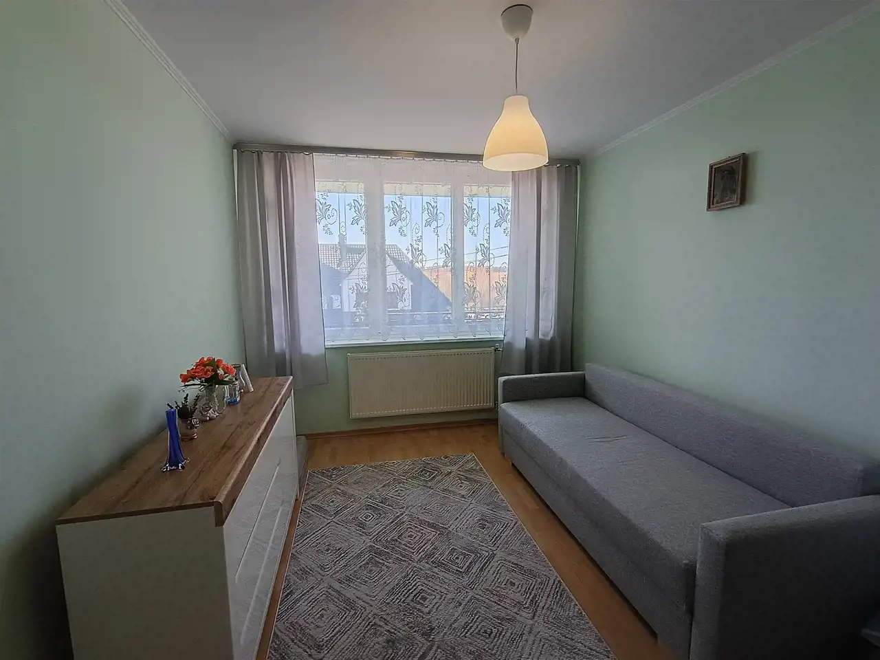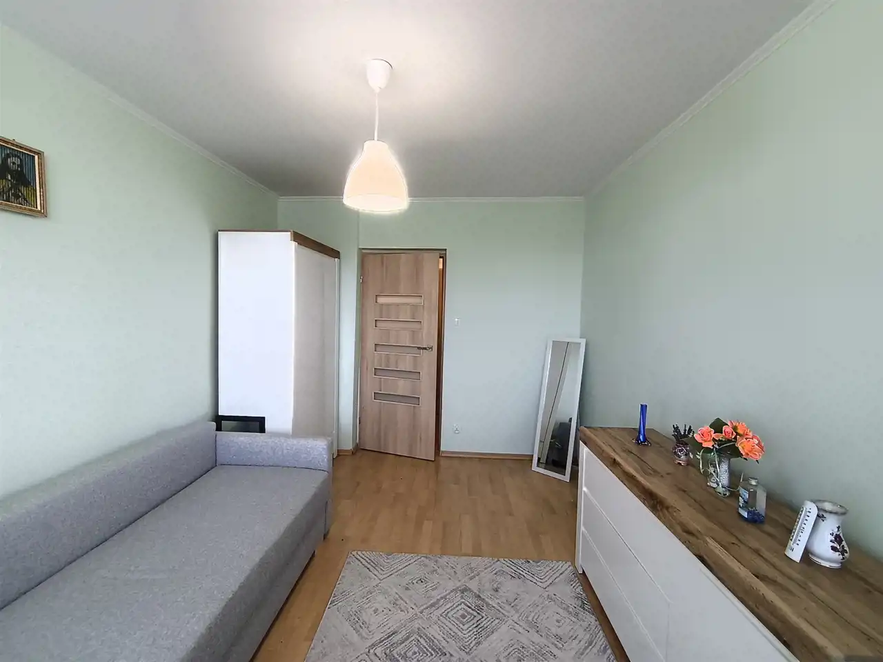 W pokojach na podłodze panele, w kuchni i łazience gres.
