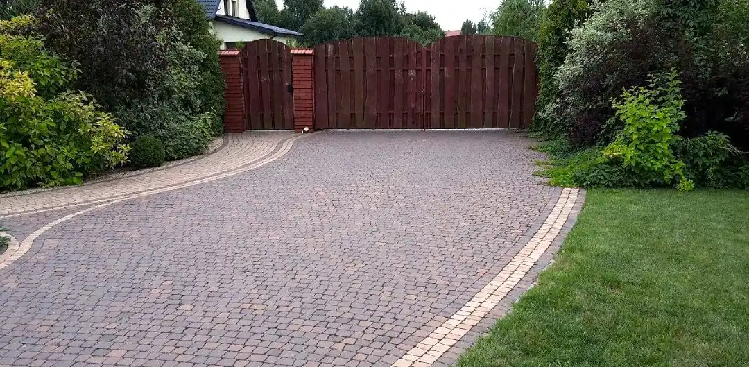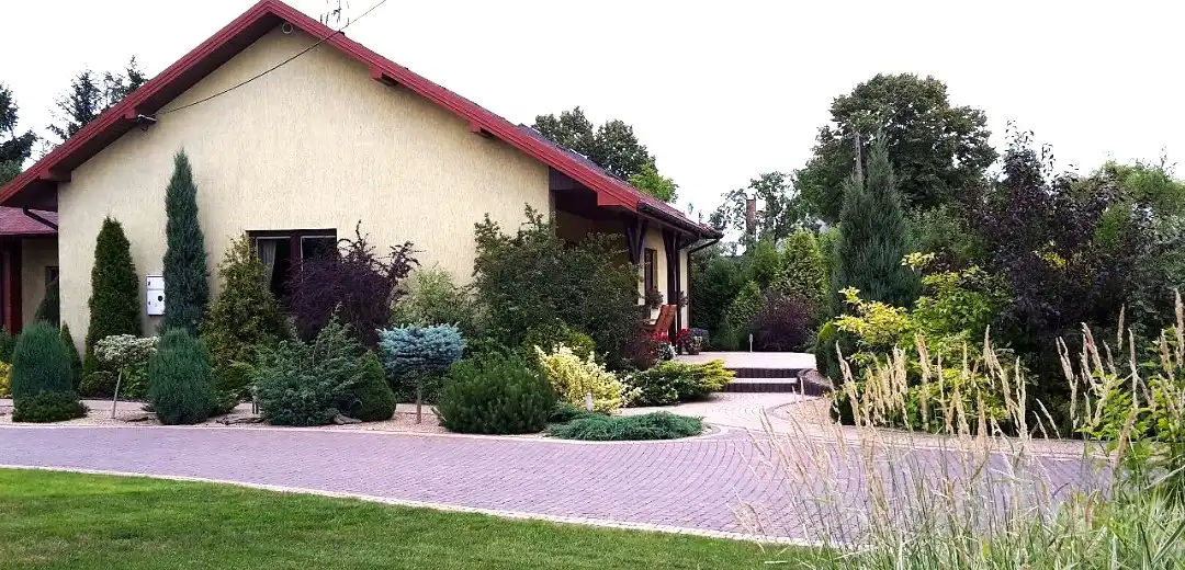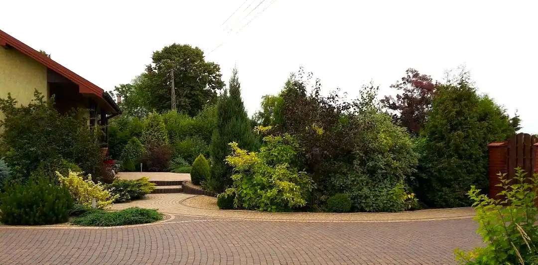 Podjazdy i ścieżki- wyłożone kostką brukową .