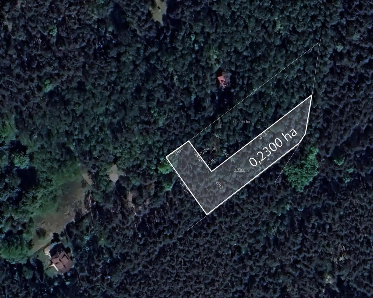- Działka Niezagospodarowana, zalesiona, w kształcie litery L