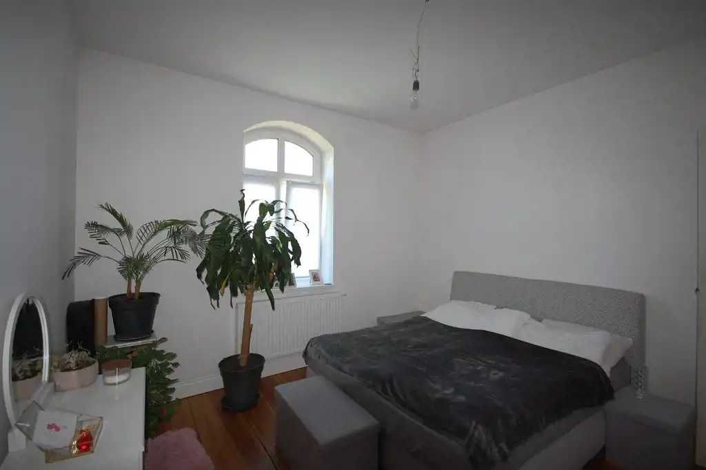 - Sypialnia o pow.ok 15 m2 - podłoga deska, ściany gipsowane-malowane, przejście do łazienki;