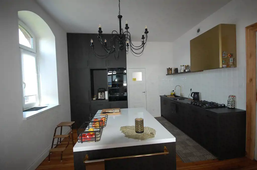 Przedmiotem oferty jest dom w Budzyniu o powierzchni użytkowej ok. 202,40m2 (powierzchnia całkowita to ok 390 m2). Budynek składa się prawnie z trzech wyodrębnionych lokali ,które stanowią jedną całość gospodarczą. Mieszkanie po wykonanym w większości,generalnym remoncie zajmuje całość piętra budynku. Właściciele, wykonując remont pozostawili i odnowili lokal w charakterze pierwotnego, przestronnego mieszkania w kamienicy.