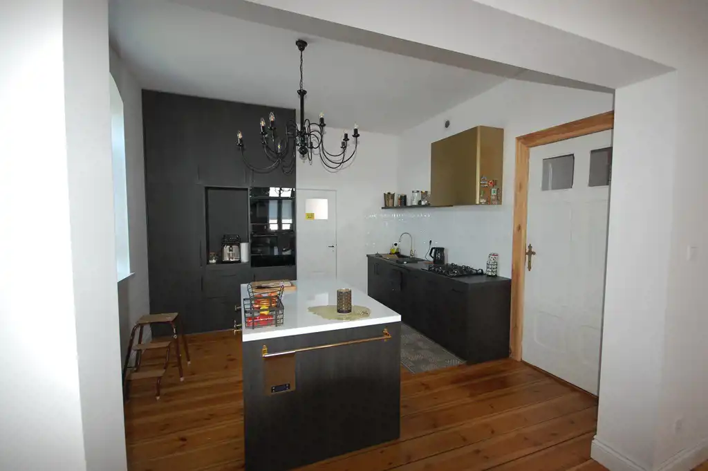 - Kuchnia o pow.ok 15,10 m2 - podłoga deska, ściany gipsowane-malowane i częściowo pokryte glazurą, w cenie pozostaje pełna zabudowa kuchni oraz 2-letni sprzęt AGD marki Samsung (kuchenka gazowa, pochłaniacz, piekarnik, kuchenka mikrofalowa)