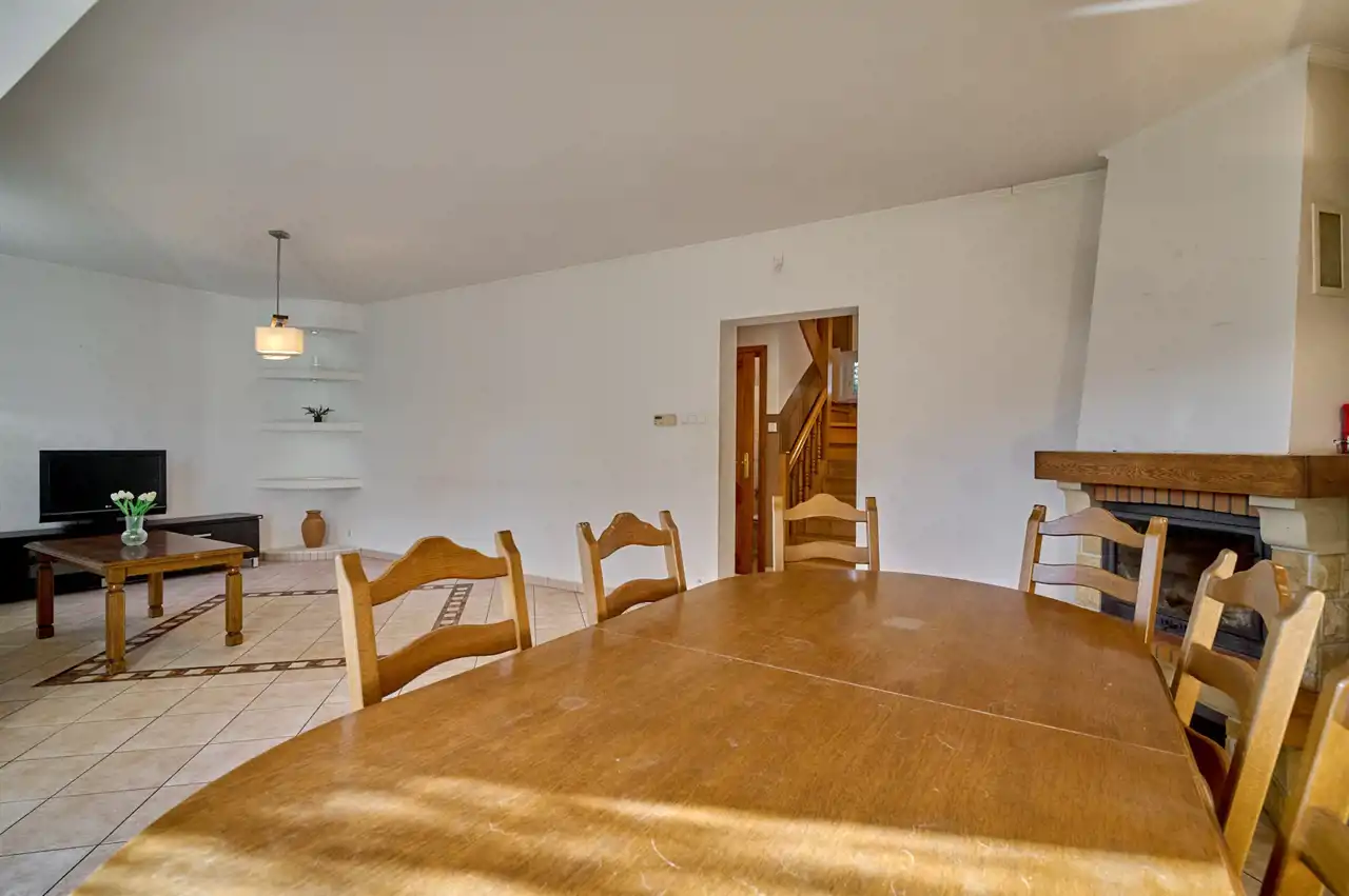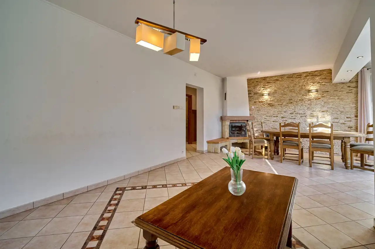 Przedmiotem oferty jest wyjątkowo funkcjonalny dom o pow. 143,1 m², położony na zadbanej działce o pow. 813 m² w spokojnej części Budzynia. Budynek wzniesiony tradycyjną metodą — ściany murowane, strop żelbetowy monolityczny oraz trwała więźba drewniana pokryta dachówką ceramiczną — gwarantują trwałość i komfort użytkowania.