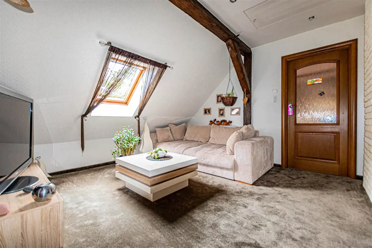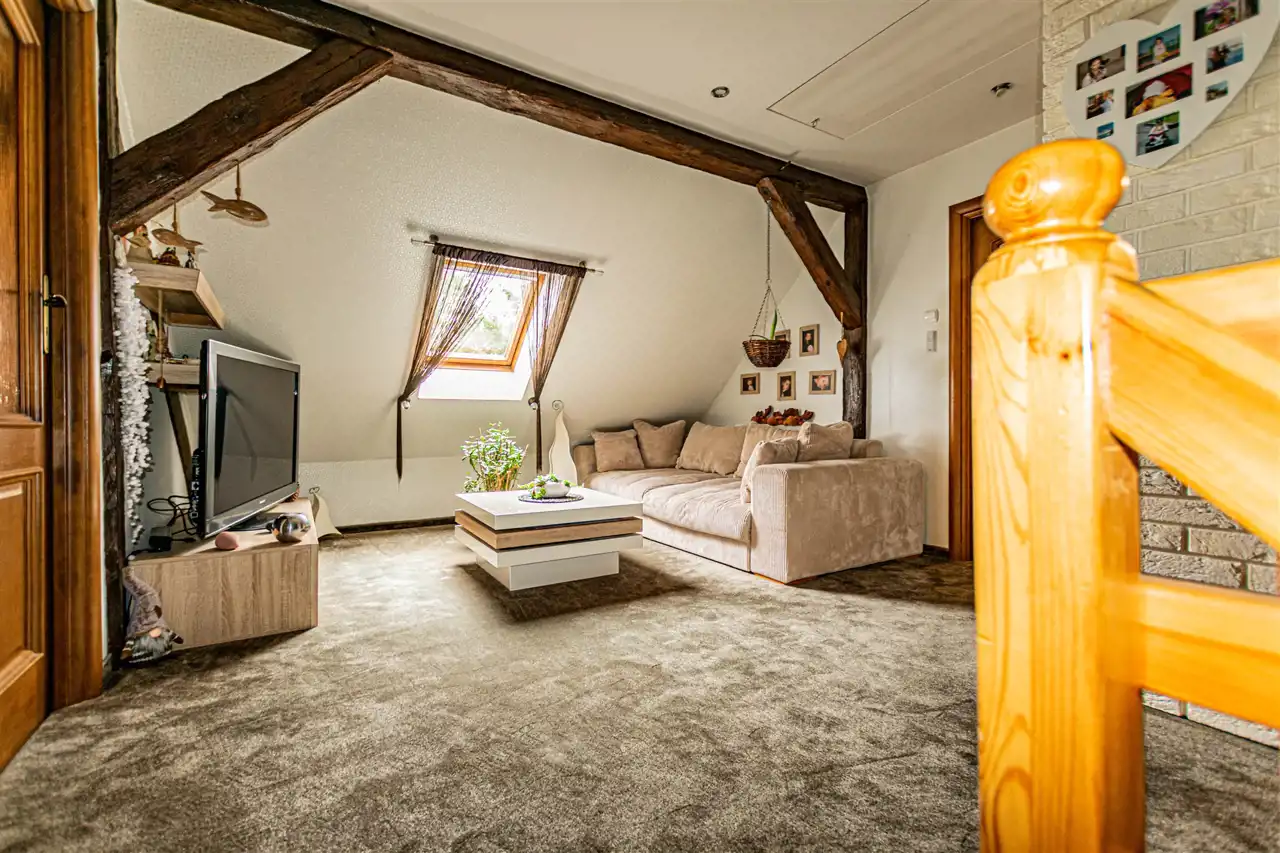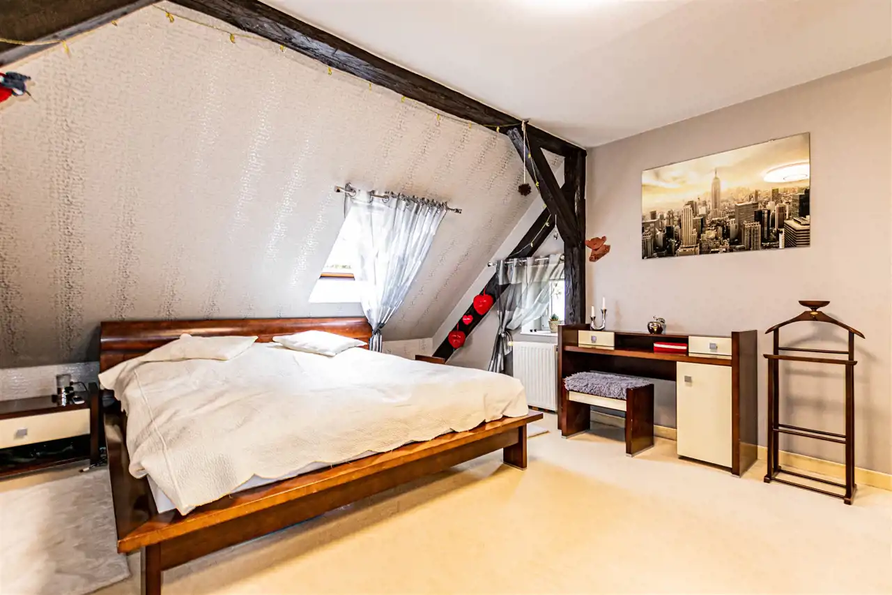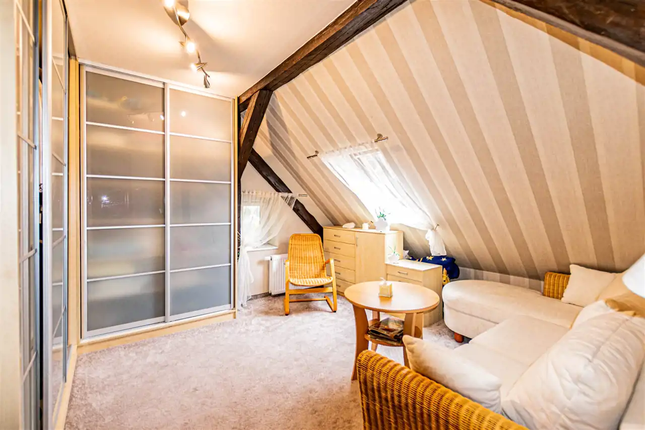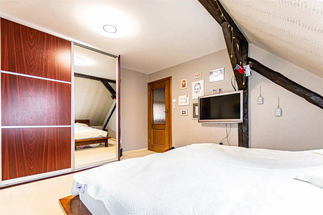 - Na piętrze 4 niezależne pokoje o pow. 17m2, 10m2, 10m2 9m2. Na podłogach bardzo miękka wykładzina dywanowa, ściany pokryte tapetami.