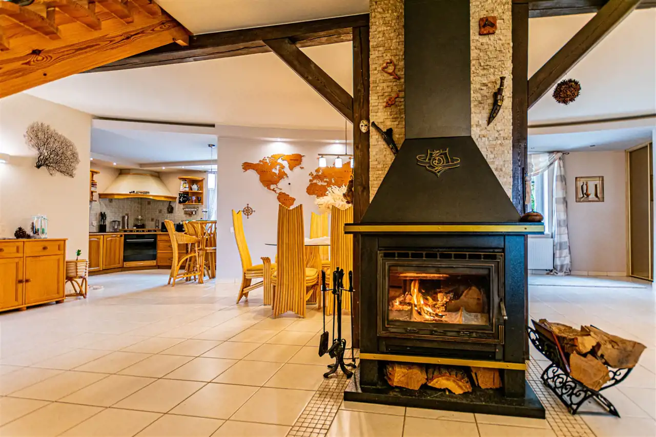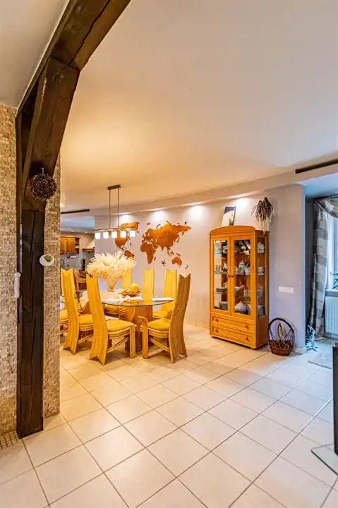 - Salon połączony z jadalnią o łącznej pow. 98 m2. Salon z gustownym kominkiem i przestronną jadalnią w której zmieści się duży stół