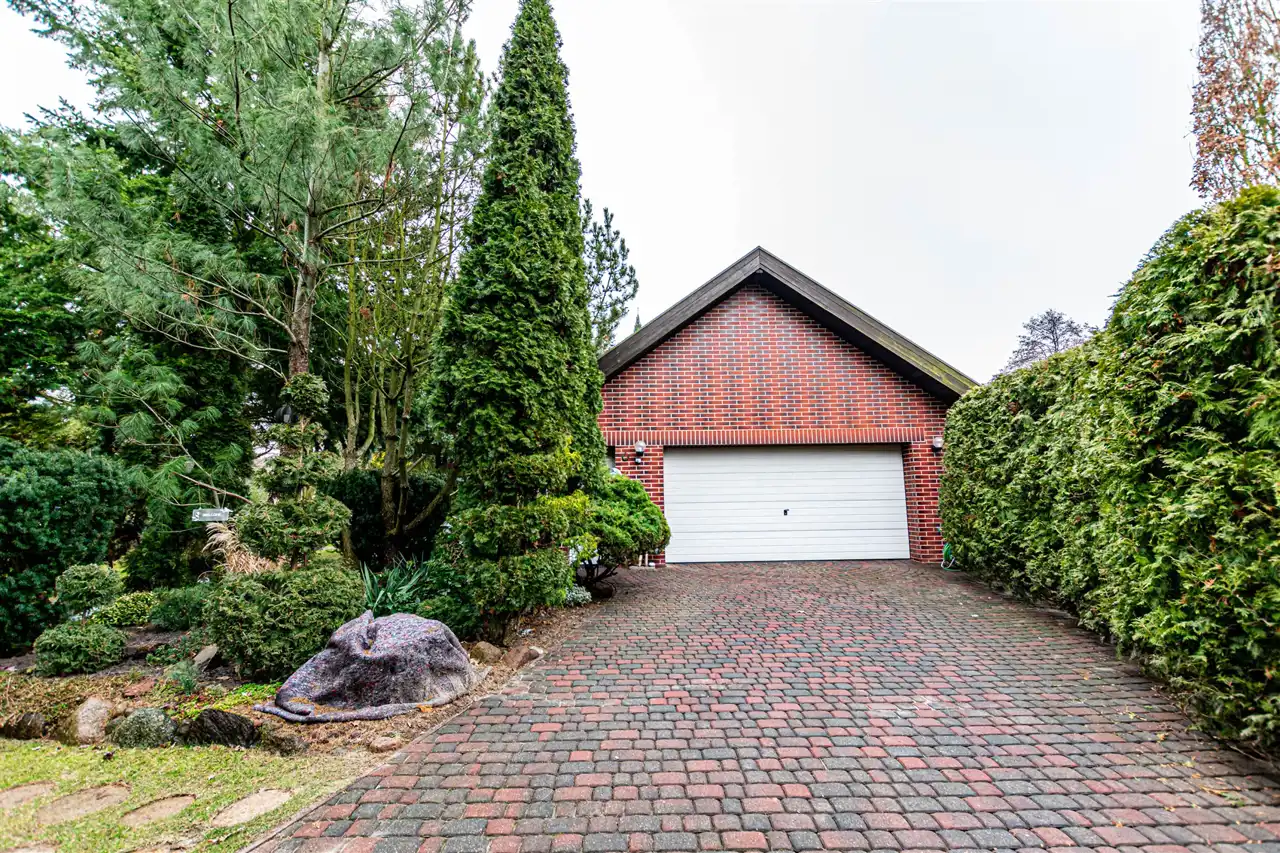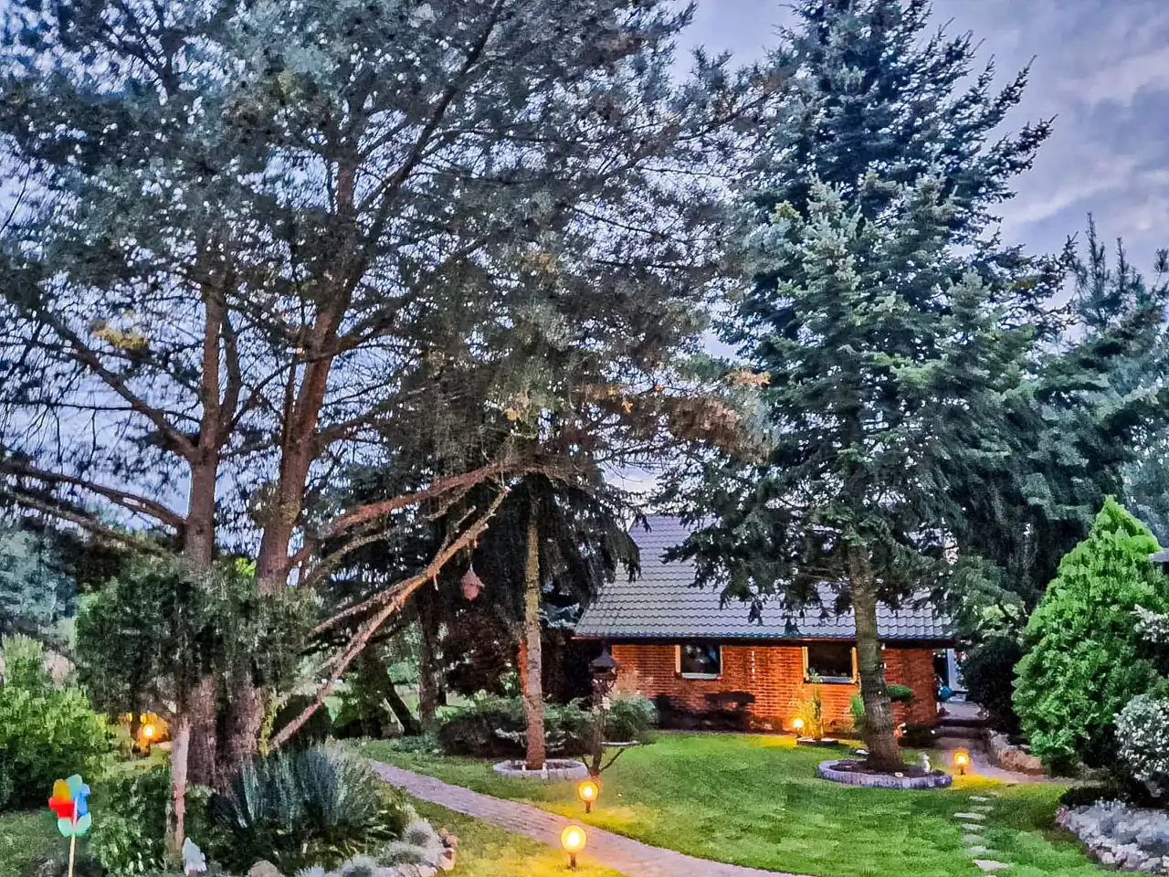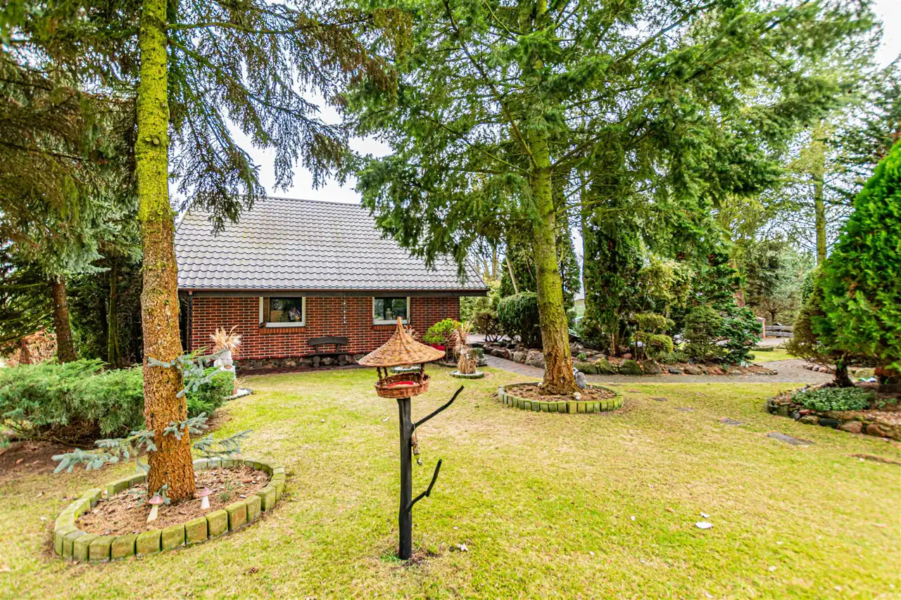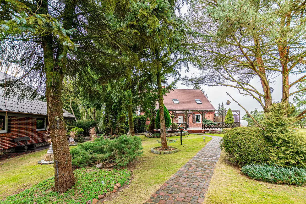 Działka w pełni zagospodarowana z perfekcyjnie zaprojektowanym ogrodem z licznymi drzewami i ozdobnymi krzewami.