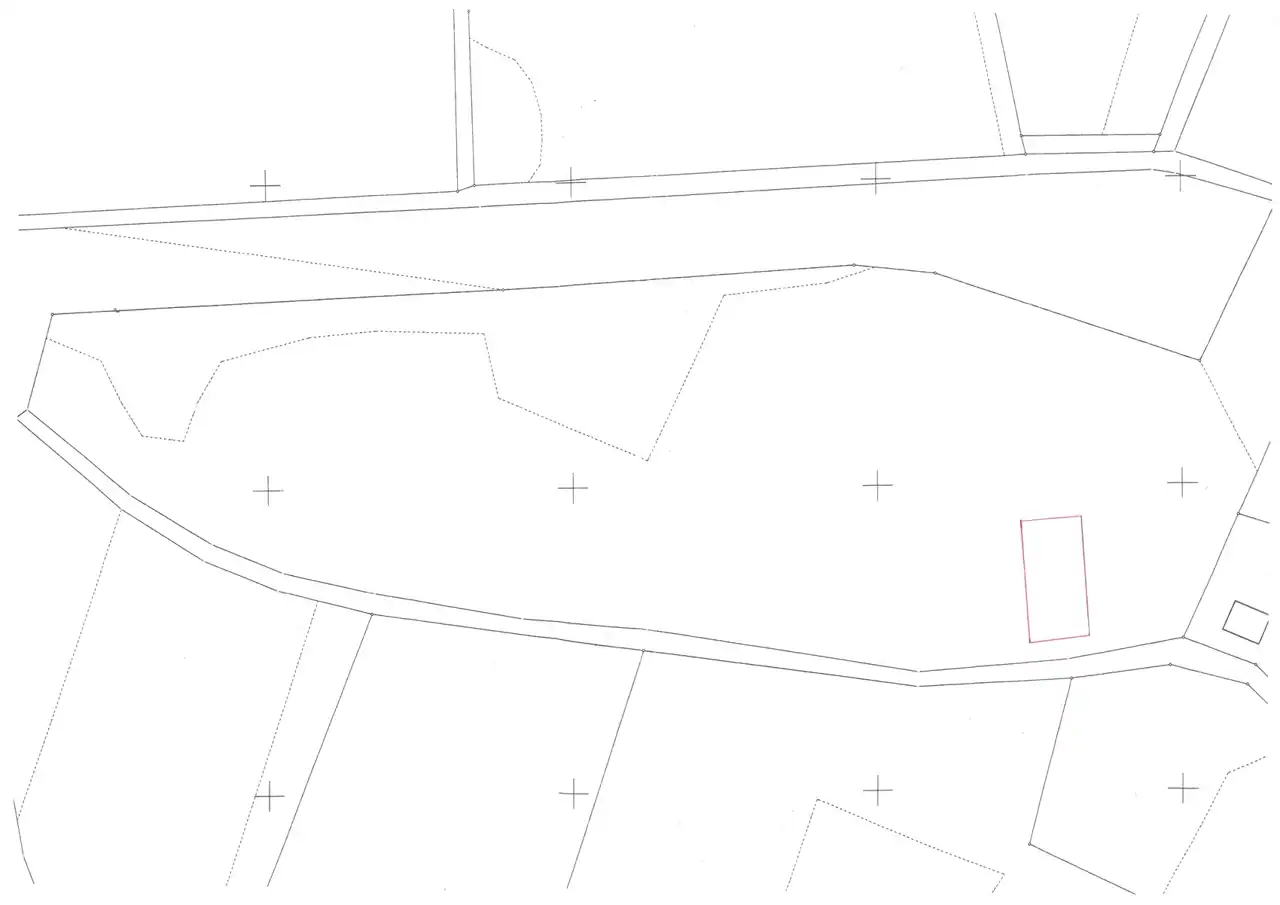 Działka o kształcie prostokąta o powierzchni ok. 800 m2 z dostępem do drogi.