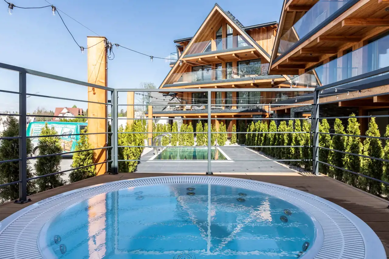 Apartamenty na parterze posiadają duże ogródki (częściowo wykończone drewnem), natomiast na wyższych kondygnacjach przewidziano przestronne balkony. Większość apartamentów oferuje wyjątkowe widoki na panoramę Tatr lub stoki Kotelnicy.
