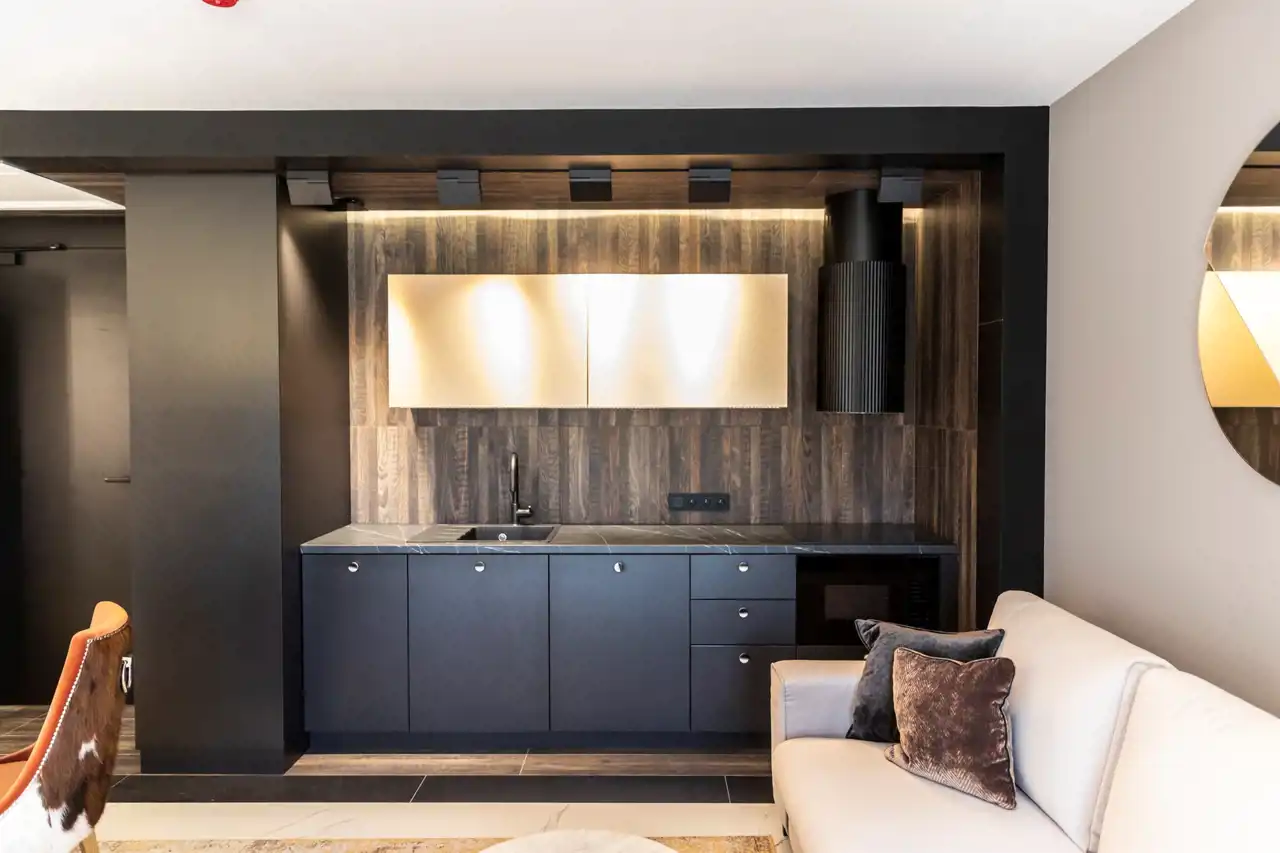- Pokój dzienny z kuchnią i jadalnią