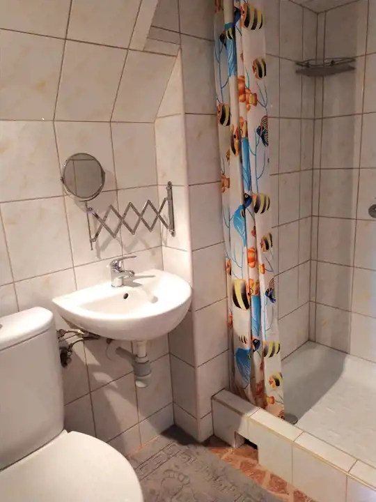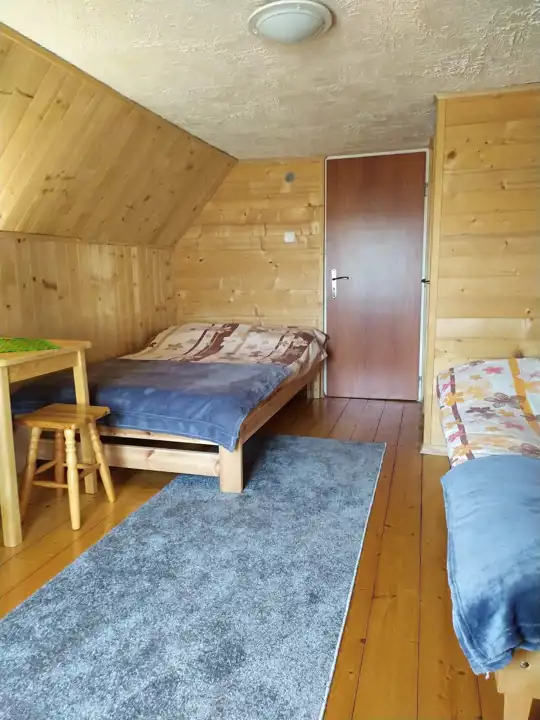 - Poddasze: 2 pokoje 3-osobowe (2+1 oraz 1+1+1) z łazienkami.