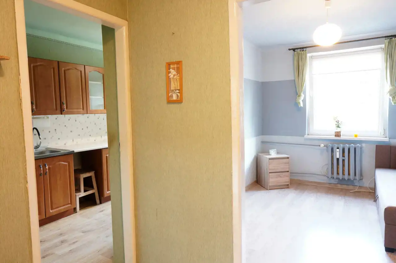 Nieruchomość nadaje się również pod wynajem (2 niezależne pokoje). Mieszkanie jest w stanie do remontu z możliwością zamieszkania po odświeżeniu. Łączna powierzchnia użytkowa wynosi 45,90 m2. Do mieszkania przynależy piwnica o powierzchni 5,6 m2. Układ pomieszczeń pozwala na ciekawe aranżację. Dodatkowo wejście do klatki zabezpieczone domofonem i elektro-zaczepem.