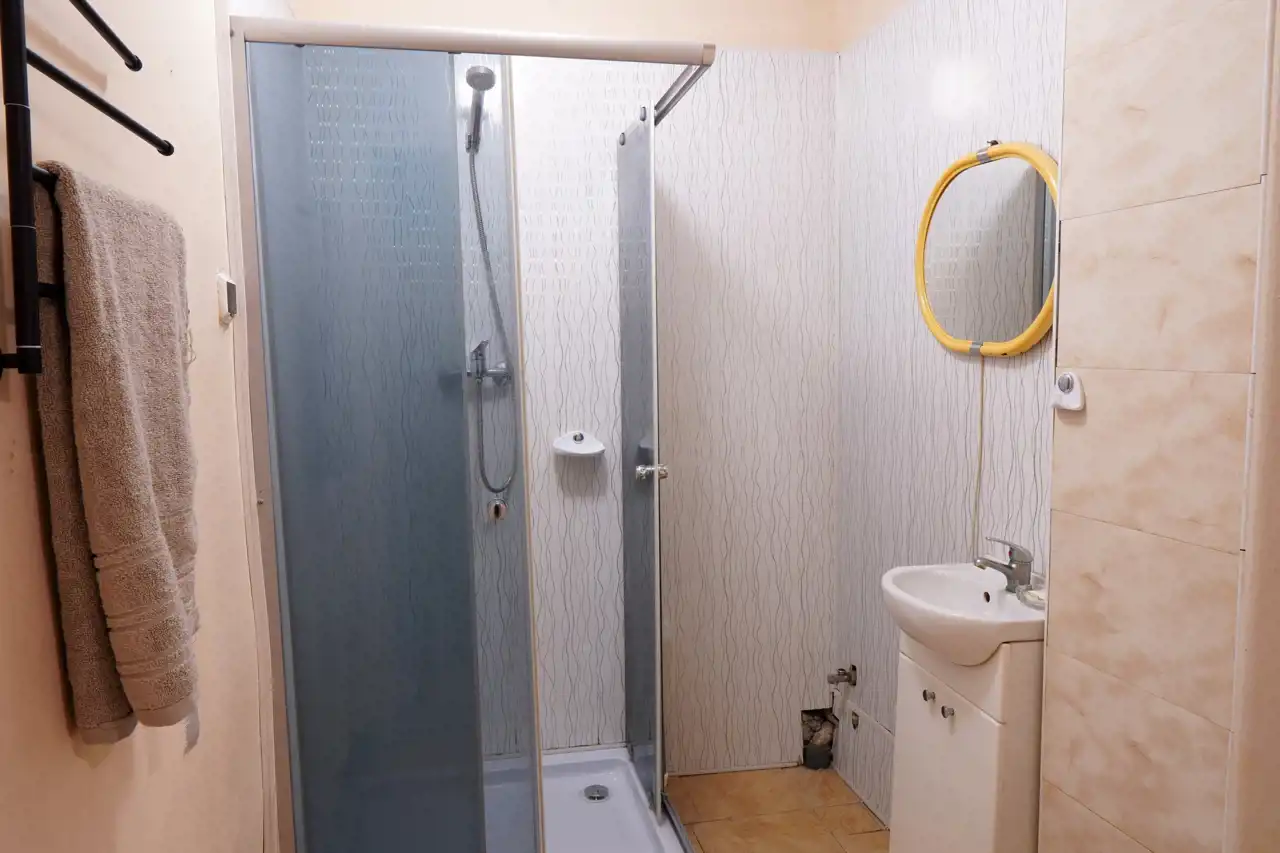 - Łazienka z WC (prysznic, umywalka, miejsce na pralkę)