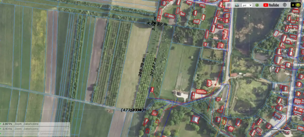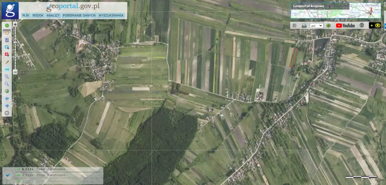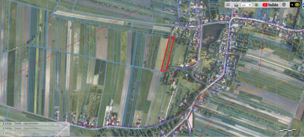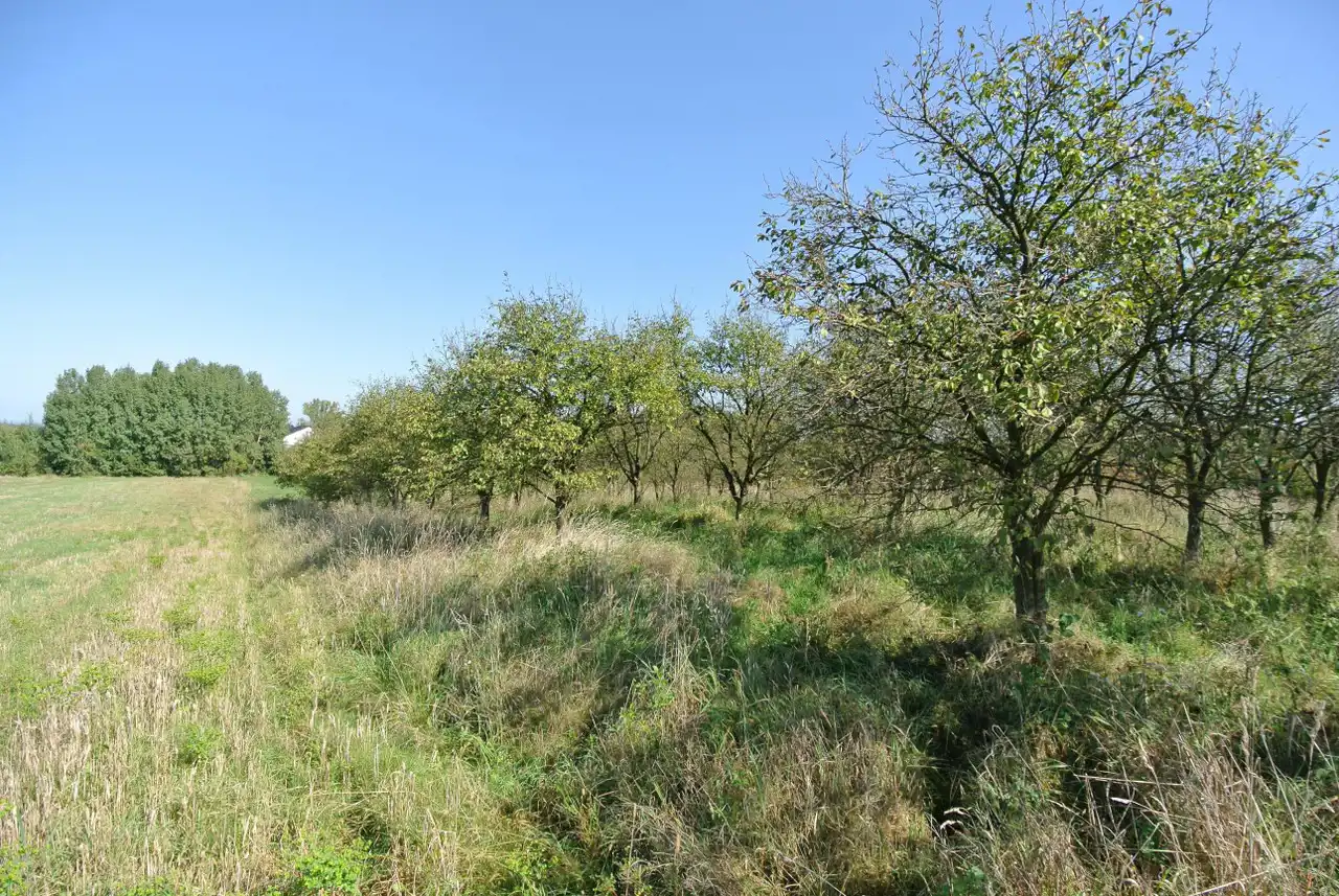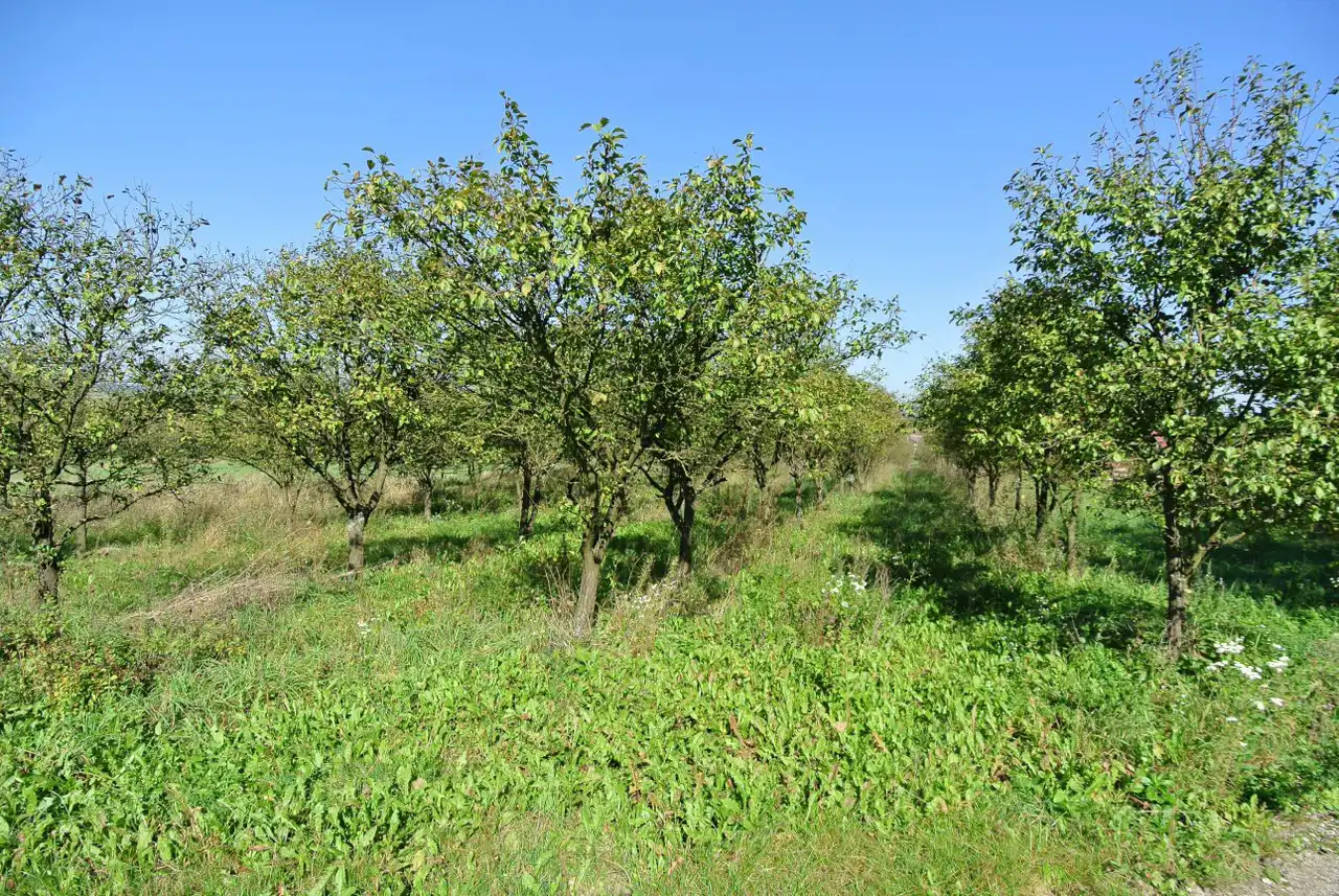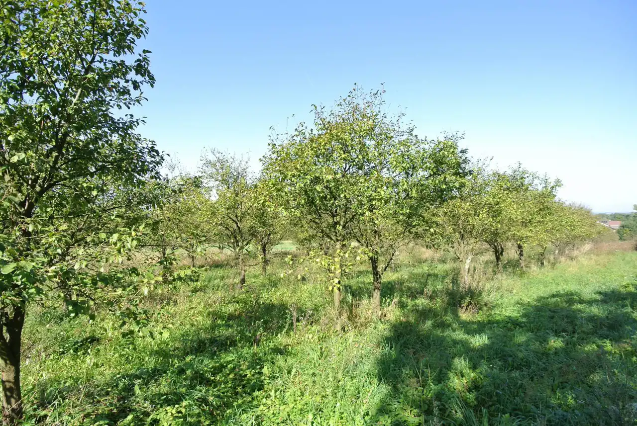 For Sale: A 5400 sqm plot located in Widuchowa near Busko-Zdrój. The plot has approximate dimensions of 27 x 207 x 20 x 3 x 4 x 209 meters, with a shape close to a rectangle (with a corner cut off) and is not fenced. Currently, there is a plum orchard on it. Access is via a hardened road.