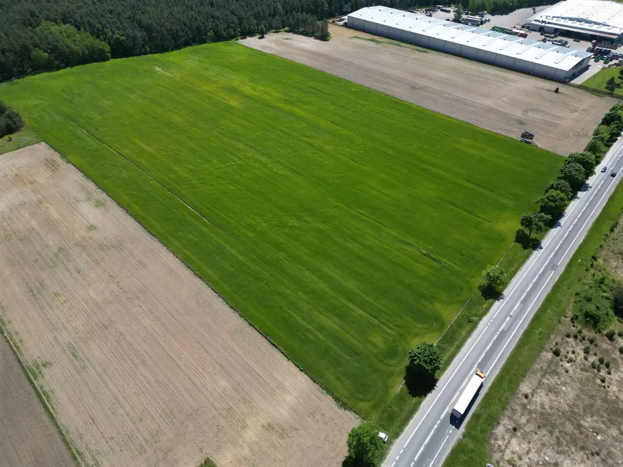 Brak Miejscowego Planu Zagospodarowania Przestrzennego, dla działki wydane są Warunki Zabudowy polegające na budowie centrum logistycznego w skład którego wchodzi: magazyn wysokiego składowania, budynek biurowo-socjalny, budynek stacji obsługi samochodów TIR, stacja paliw płynnych, budynek portierni, infrastruktura towarzysząca (m.in. ogrodzenie stałe, pylony reklamowe, stacja transformatorowa, oczyszczalnia ścieków), pełna infrastruktura techniczna oraz budowa zjazdu publicznego z drogi krajowej nr 73.