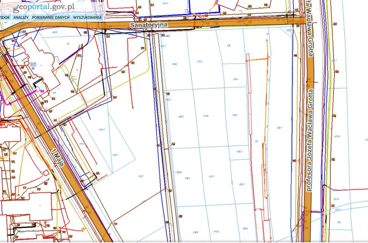 - Media Woda: w ulicy; Kanalizacja: w ulicy; Prąd: na sąsiedniej działce; Gaz: na sąsiedniej działce